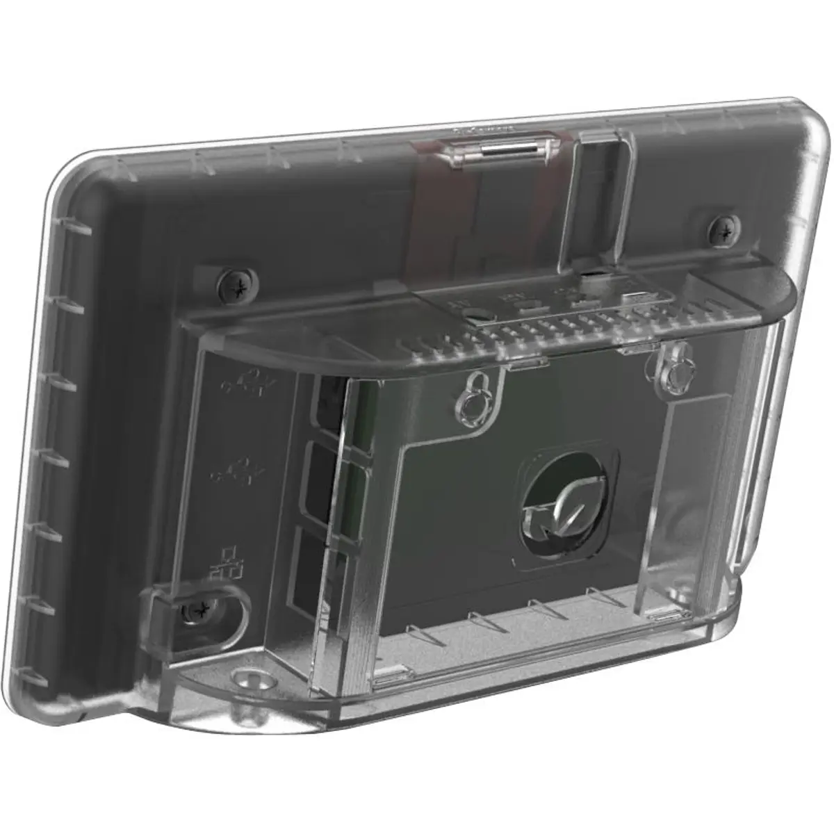 Se desejar montar a caixa Raspberry Pi numa parede, poderá fazê-lo, removendo a tampa traseira para ter acesso aos dois furos integrados para montagem em parede.