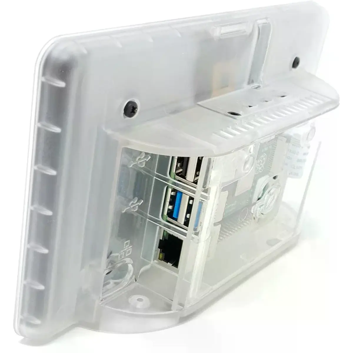 Caixa concebida para acoplar um Raspberry Pi 4 Modelo B a um display Touch 7" original Raspberry Pi (na parte de trás).