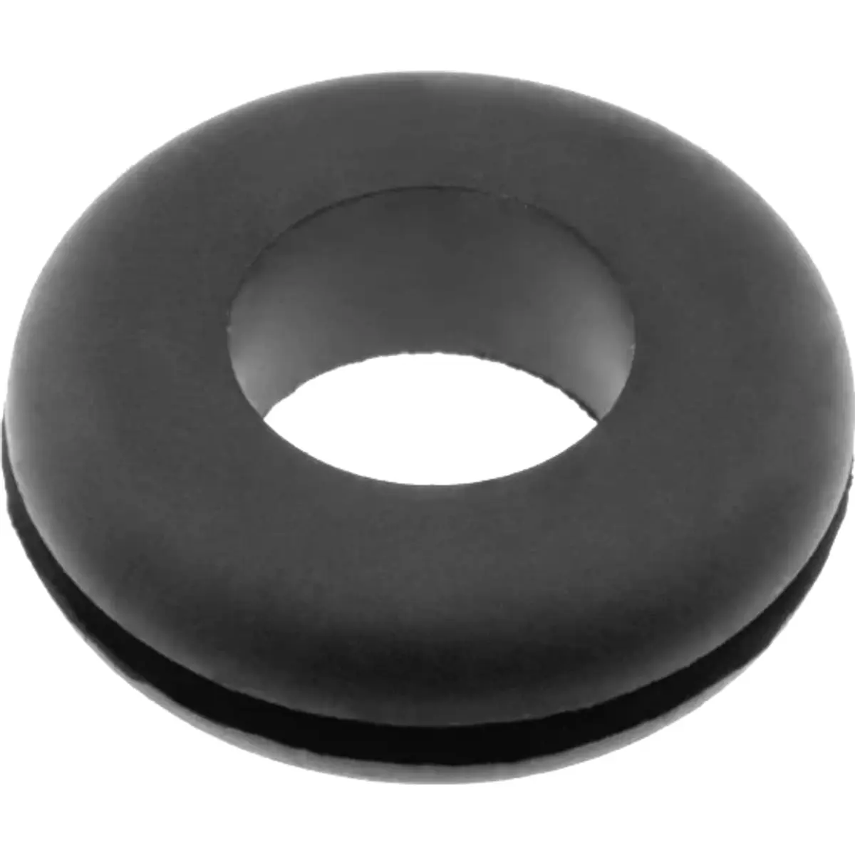 Ilhó passa-fios de borracha preta, com abertura de montagem de 20,8 mm e furo de 12,7 mm, concebido para cabos em painéis finos. Proporciona isolamento, proteção contra vibrações e gestão de cablagem, compatível com espessura de painel até 1,6 mm. Ideal para passagem de cabos, redução de danos e acabamento de montagem em ambientes industriais ou domésticos.