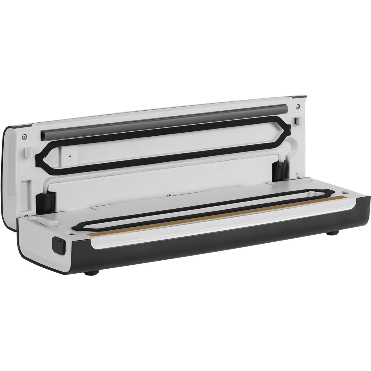 Seladora a vácuo com painel tátil de fácil utilização para selar sacos de 30 cm de largura, criando vácuo de até -0,7 bar para conservar alimentos por mais tempo. A 230 V, 130 W de potência assegura operações rápidas, com tubo de sucção integrado e lâmina incluída. Inclui sacos de vácuo, tubo, lâmina e manual; compatível com filmes BPA Free de 5 m em rolos de 15 cm, 22 cm e 28 cm. Compacta e estável, ideal para reduzir desperdícios, manter a frescura e prolongar a durabilidade de carnes, frutos, legumes e bolos.