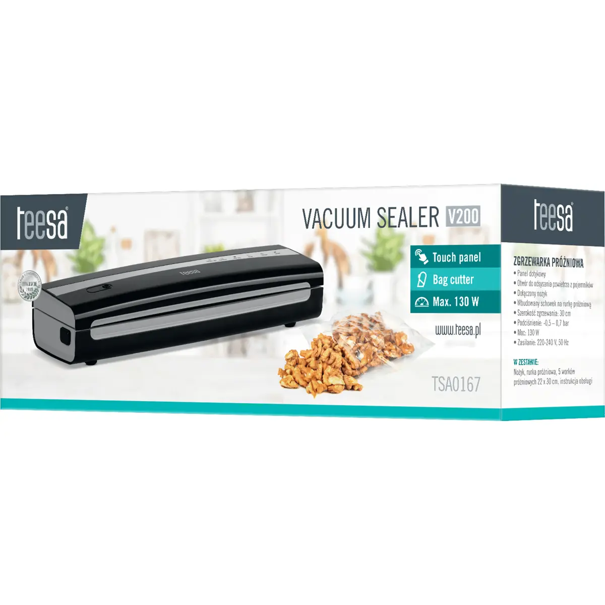 Se detesta o desperdício de alimentos ou segue os princípios do zero desperdício, a Seladora a Vácuo Teesa V200 é um equipamento essencial para a sua cozinha. Com este equipamento, os seus alimentos permanecerão frescos e saborosos por mais tempo, permitindo que conserve bolos, frutas, legumes, carnes, queijos, peixes e outros pratos prontos por períodos prolongados. A embalagem a vácuo protege os produtos contra bactérias e fungos, prolongando a sua durabilidade.