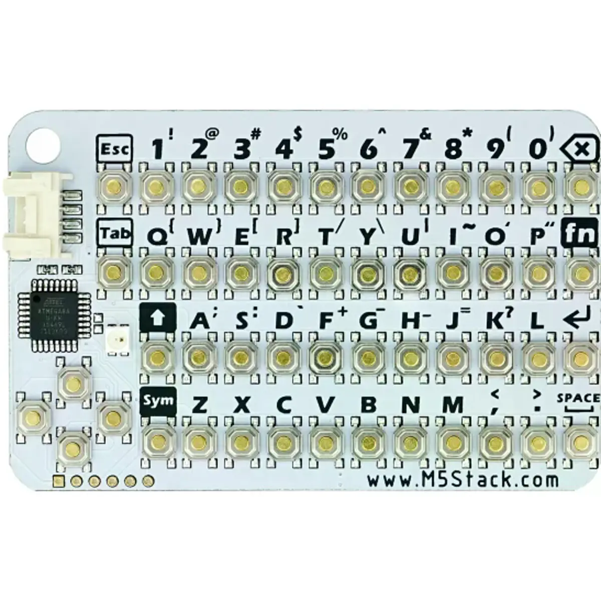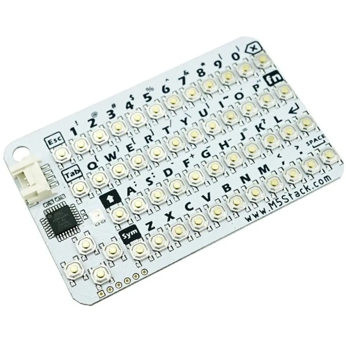 Este teclado compacto oferece 50 teclas, interface GROVE, comunicação I2C e LED RGB para feedback visual. O MCU é um ATMega8A, proporcionando compatibilidade com plataformas UIFlow e Arduino. Ideal como periférico de teclado para sistemas baseados em microcontroladores, o dispositivo pesa apenas 17 g e mede 88*54*5mm. Inclui cabo GROVE e facilita a integração com módulos de prototipagem.