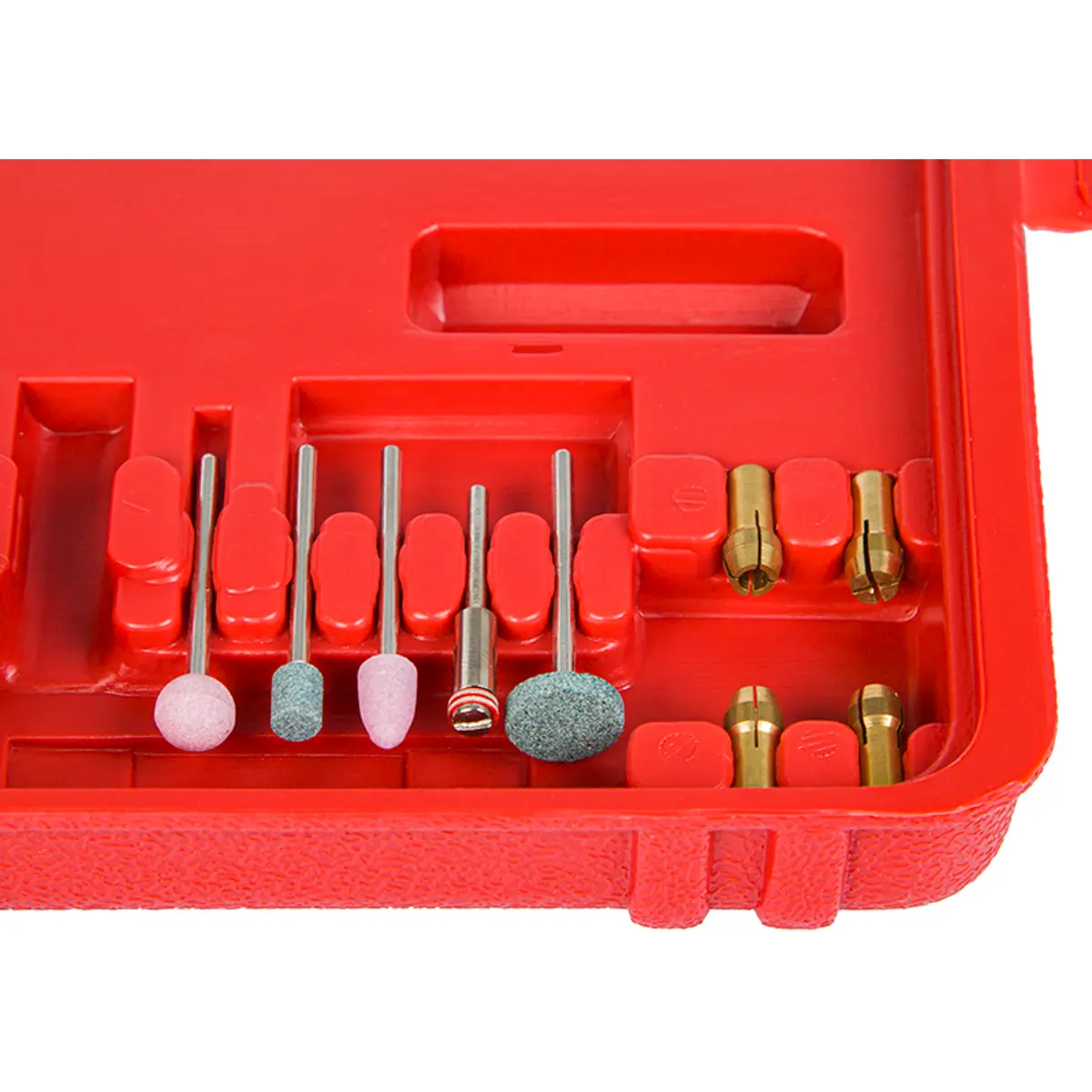 - Conjunto inclui quatro porta-brocas (inserções), duas mini-lixas, um cortador esférico e brocas