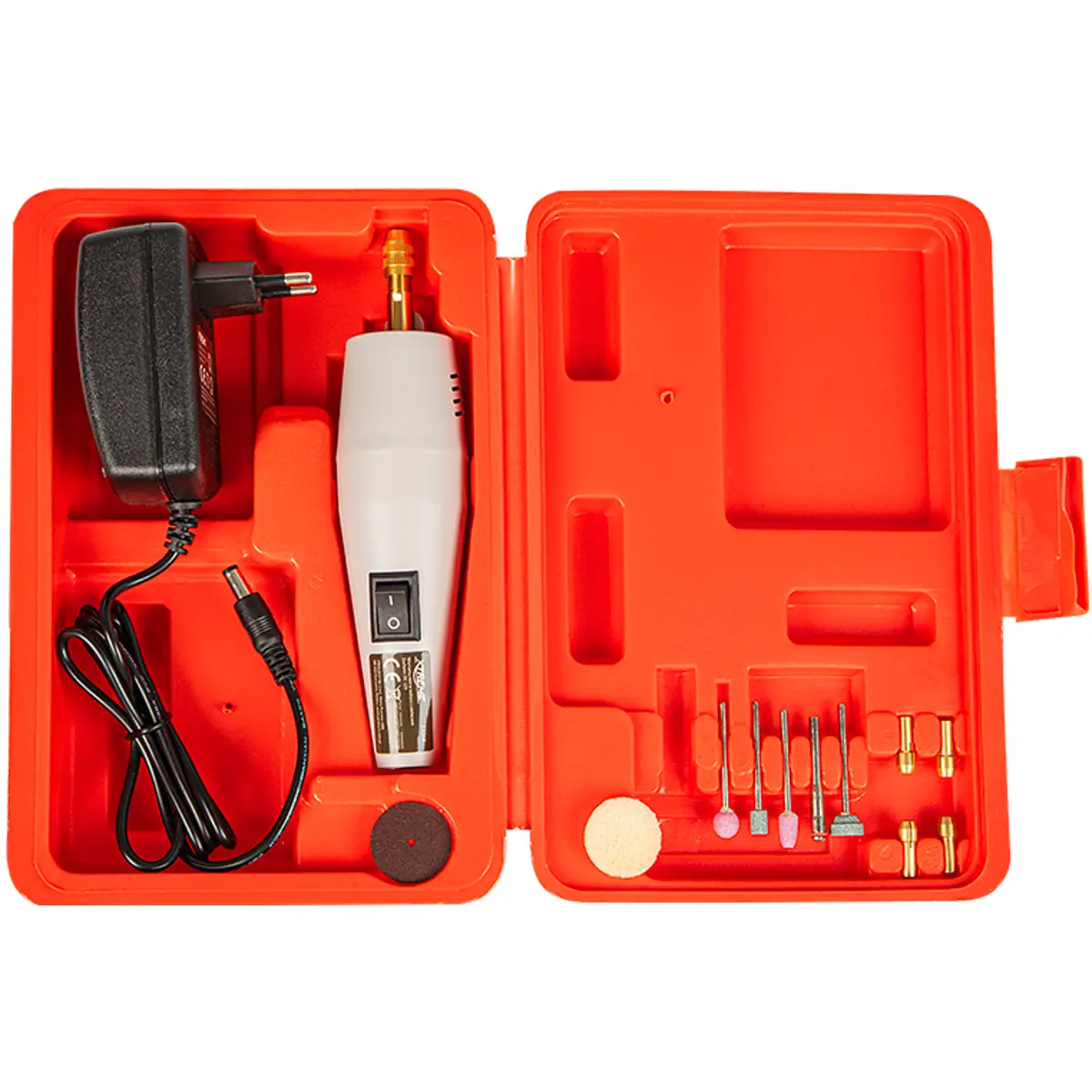 Mini berbequim/esmeril elétrico, ideal para trabalhos como a criação de placas de circuito impresso, modelagem, e muito mais.