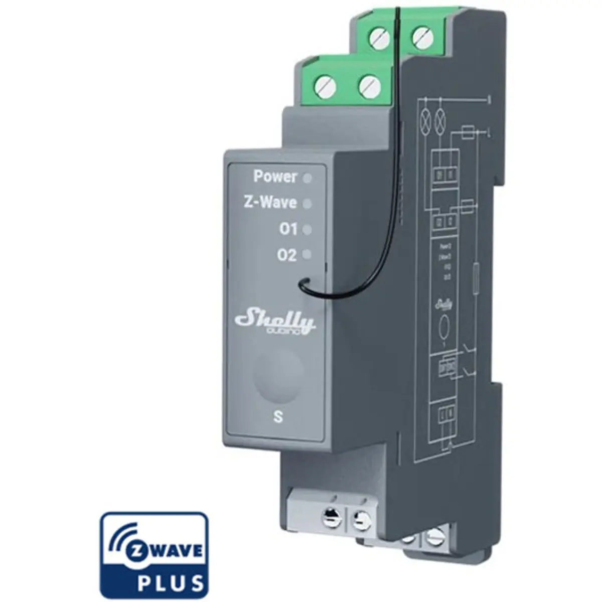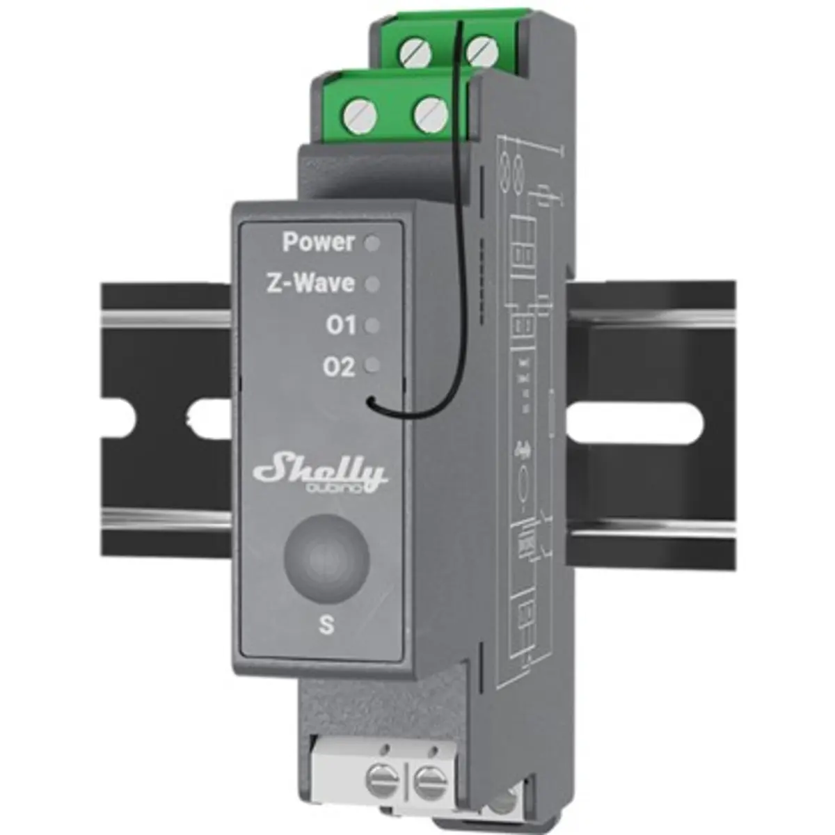 Interruptor inteligente Z-Wave®, profissional, de 2 canais, com contactos secos (livres de potencial) de 16A, para montar em calha DIN (dentro de um quadro elétrico).