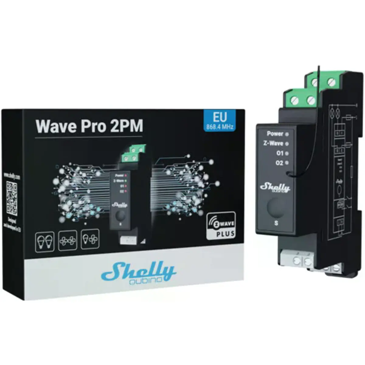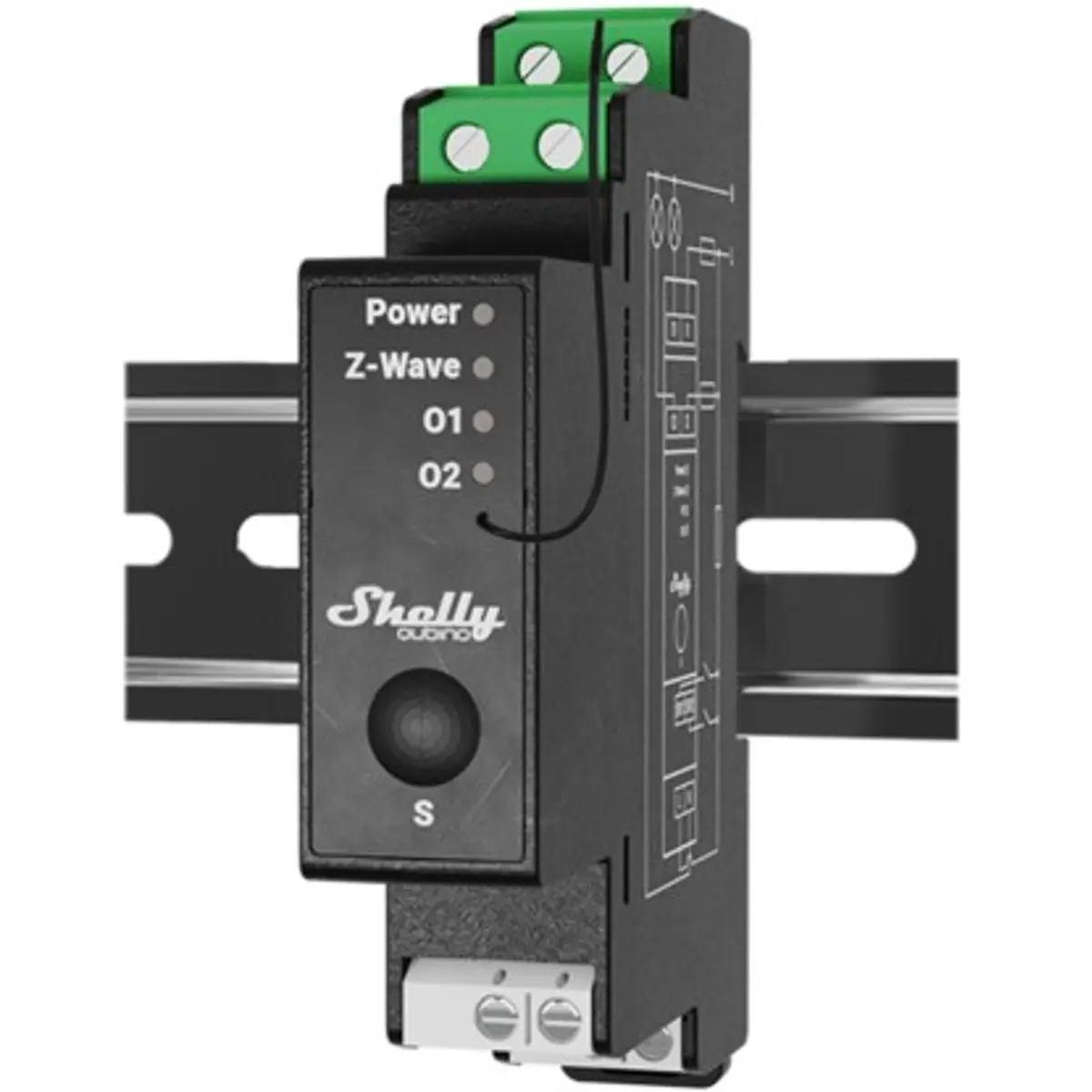 Interruptor inteligente Z-Wave®, profissional, de 2 canais, com medição de energia e 2 contactos independentes que suportam até 16A cada um (25A em conjunto). É um módulo concebido para ser montado numa calha DIN (dentro de um quadro elétrico) e é adequado para a automação inteligente de casas e instalações controladas remotamente.
