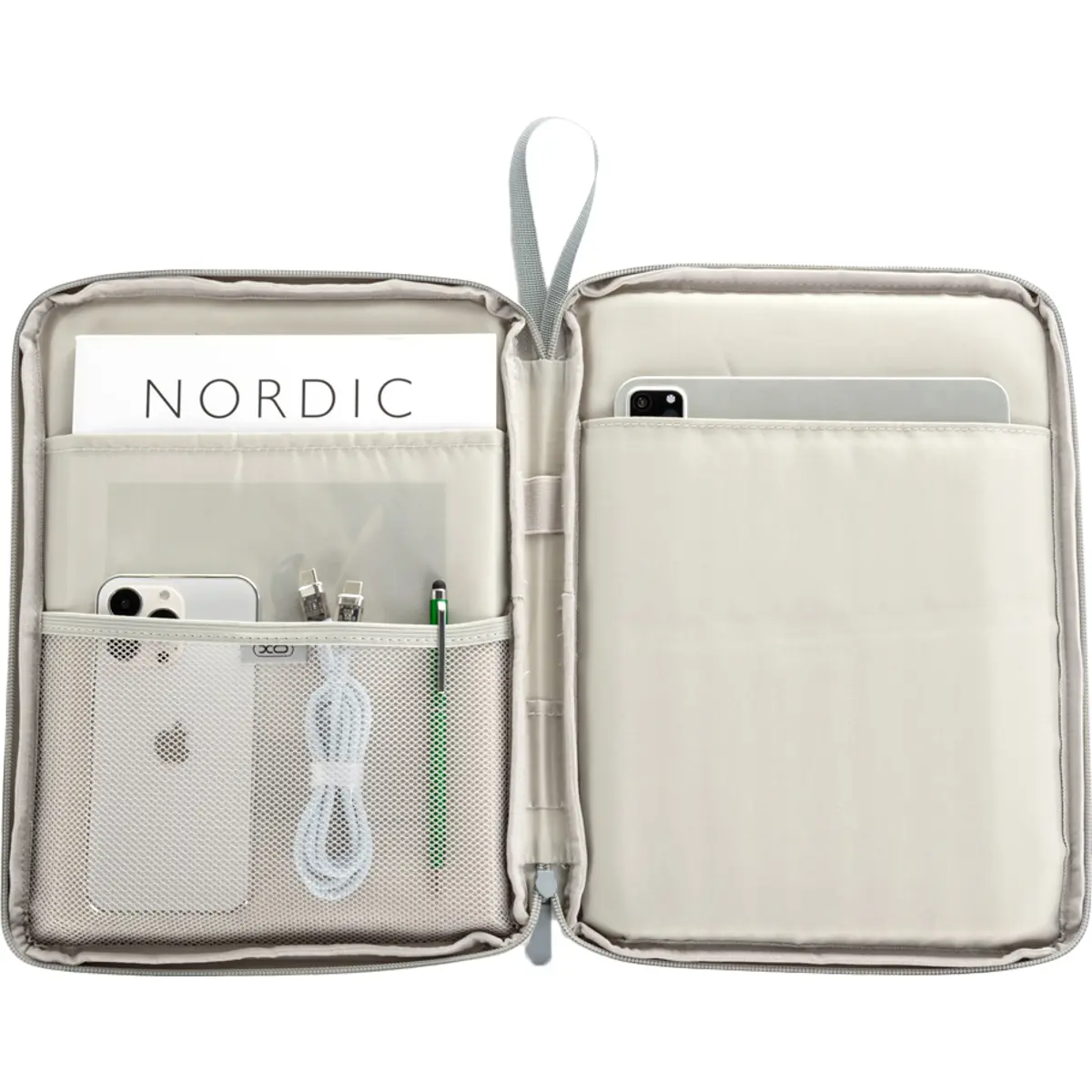 Mala para laptop projetada para dispositivos com tela de 10.9", equipada com um bolsos internos para acomodar diversos acessórios.