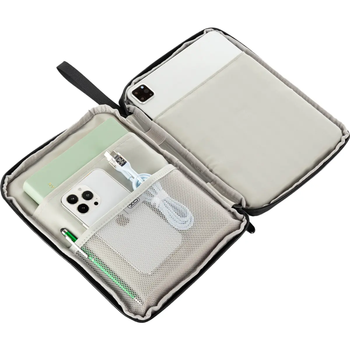 Esta bolsa sleeve para tablet de 12.9 polegadas oferece proteção prática para o transporte diário. Feita em PU de cor preta, apresenta um bolso interno para acessórios e ajuste compacto para manter o tablet seguro. Leve (127.8g) e com dimensões de 230x310x23.4mm, é ideal para deslocações, viagens e uso em escritório, em transporte público ou em casa. Perfeita para quem procura organização, leveza e estilo discreto.