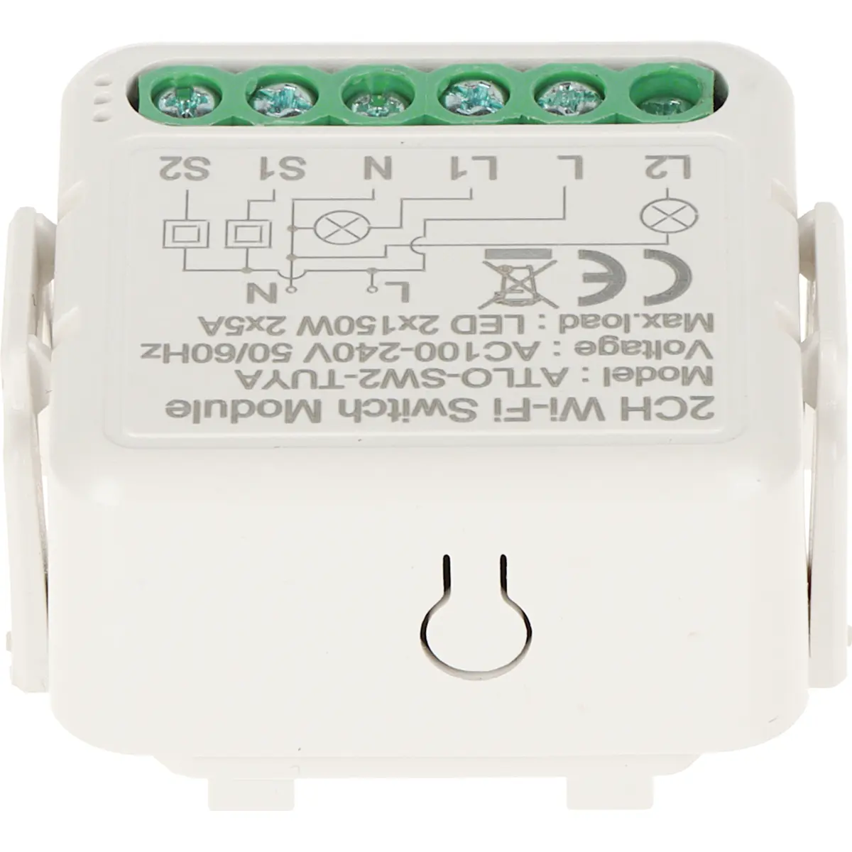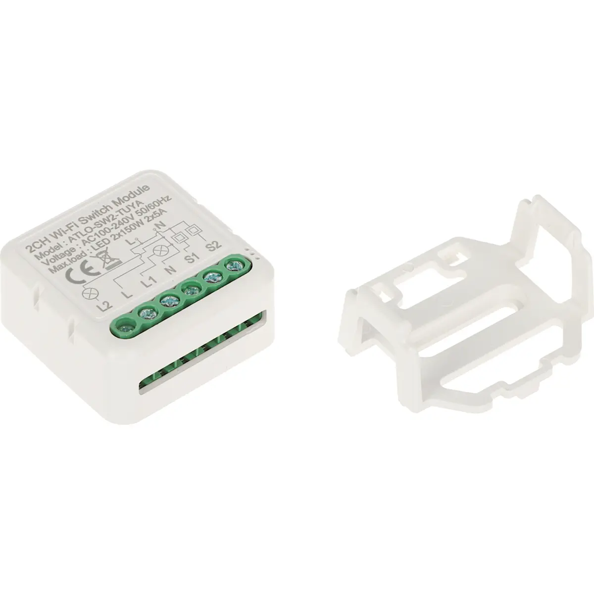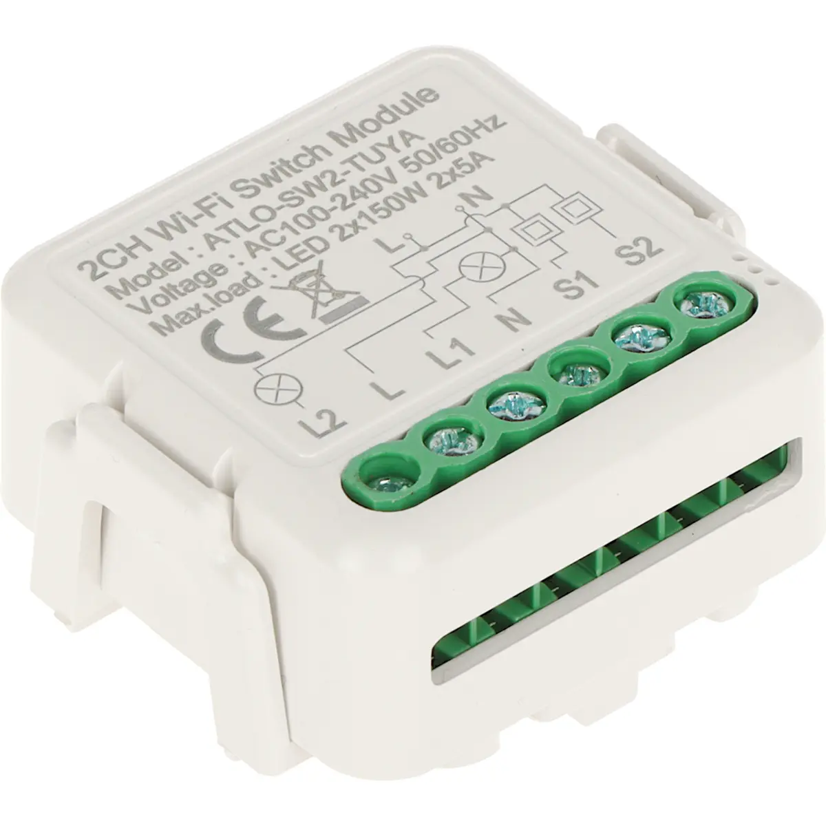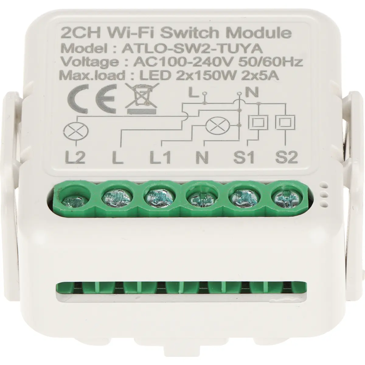 ATLO SW2-TUYA - Módulo interruptor duplo p/ iluminação LED 2x150W 2x5A inteligente WiFi (compatível c/ Tuya)