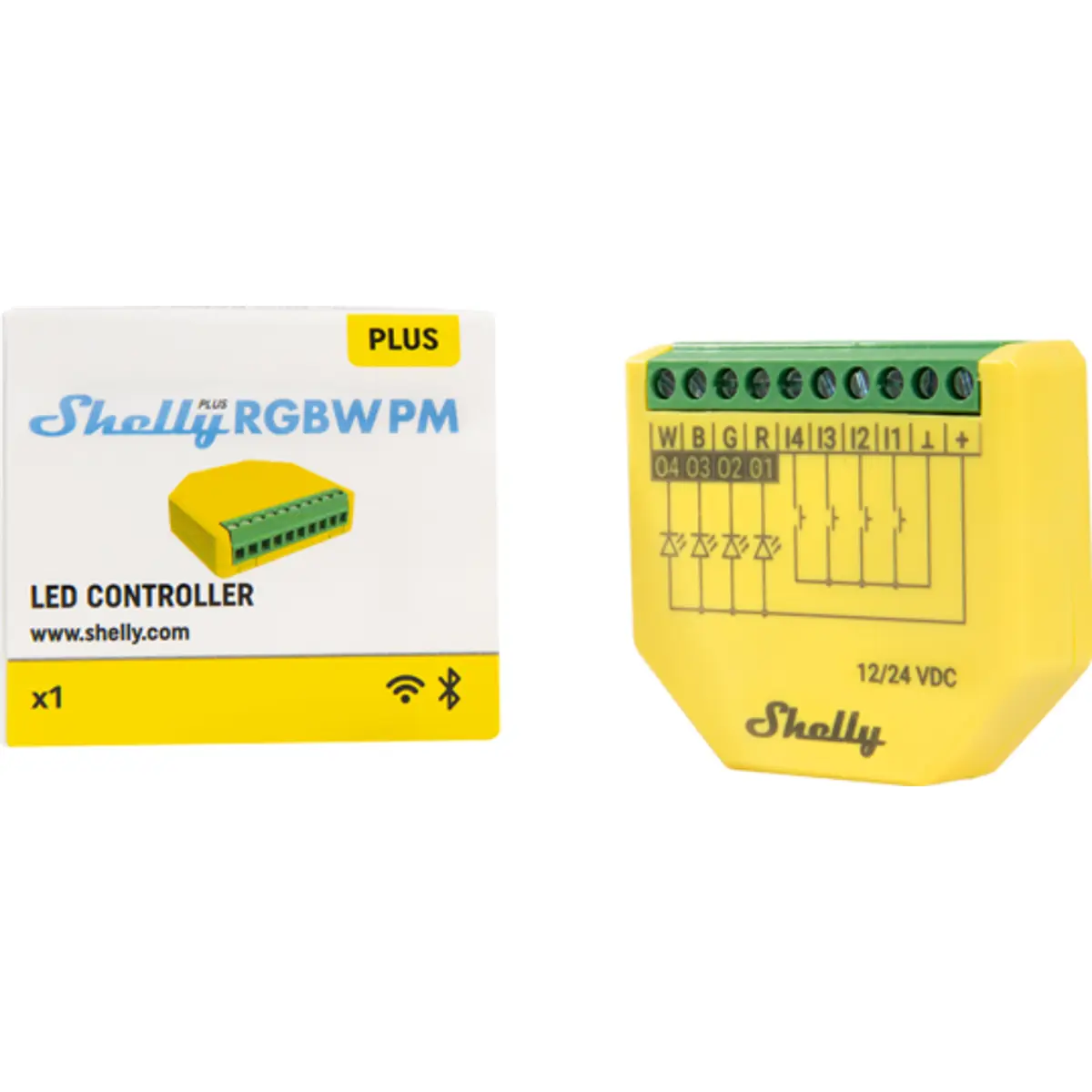 Compacto e versátil, concebido para o controlo (através de WiFi) de quaisquer fitas de LEDs 12/24V, até 4A por canal (mas limitado a 10A no total).