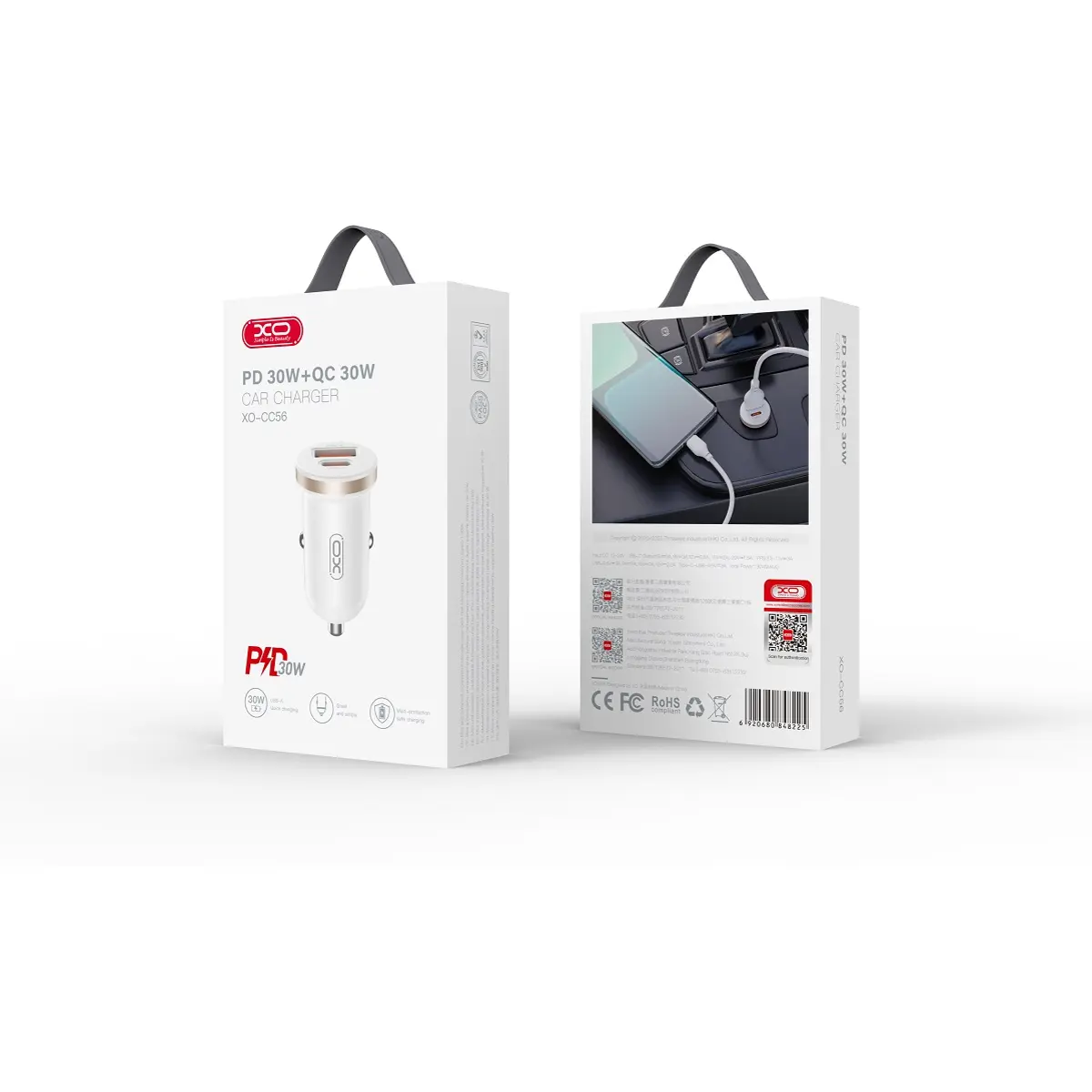 O XO CC56 é um carregador para automóvel com duas tomadas USB A QC 3.0 / USB-C PD, às quais pode ligar um cabo adequado para carregar dispositivos móveis. Graças às pequenas dimensões do carregador, o dispositivo ocupa pouco espaço. Com o carregador para automóvel XO, já não tem de se preocupar com um telemóvel ou tablet descarregado no automóvel.