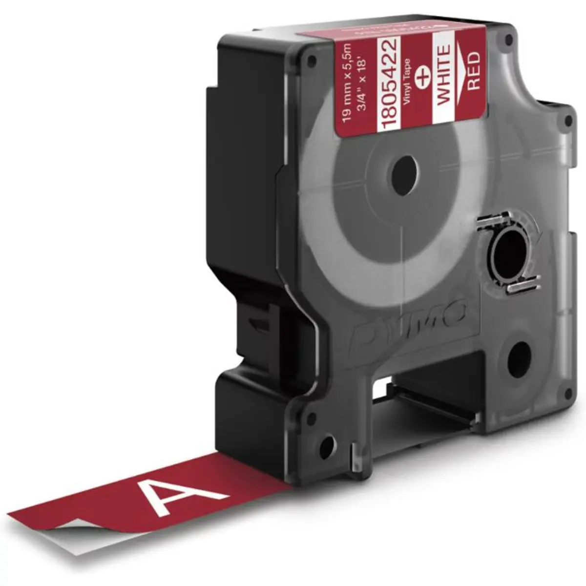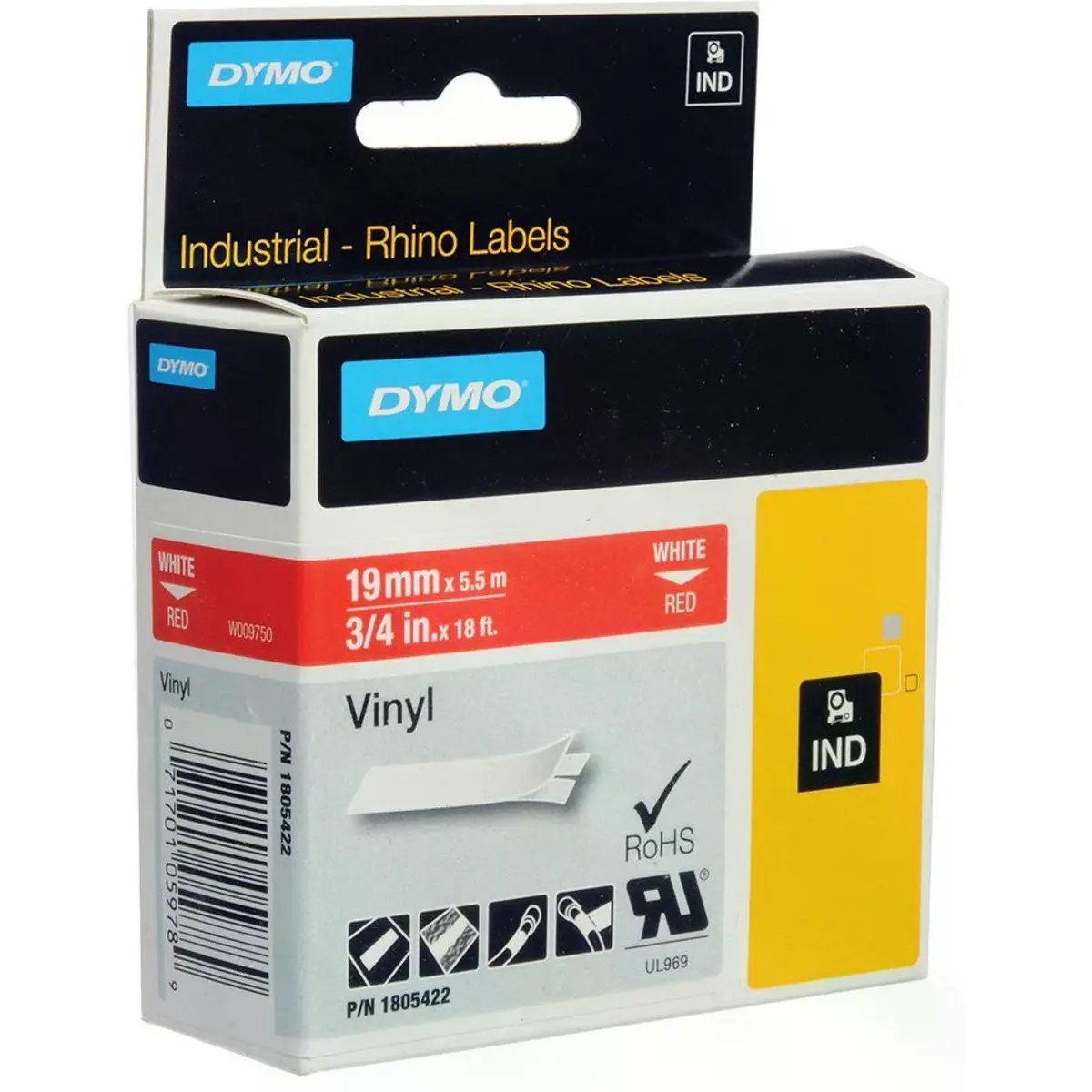 DYMO 1805422 - Fita de etiquetar RHINO 18433 [Branco sobre Vermelho] em vinil - 19mm x 5.5m