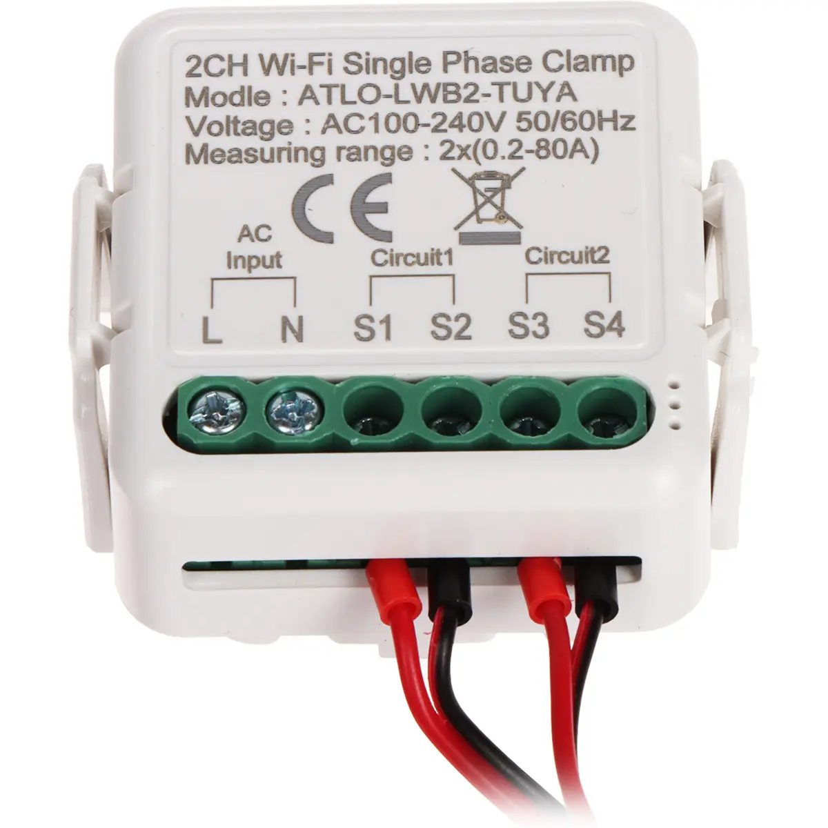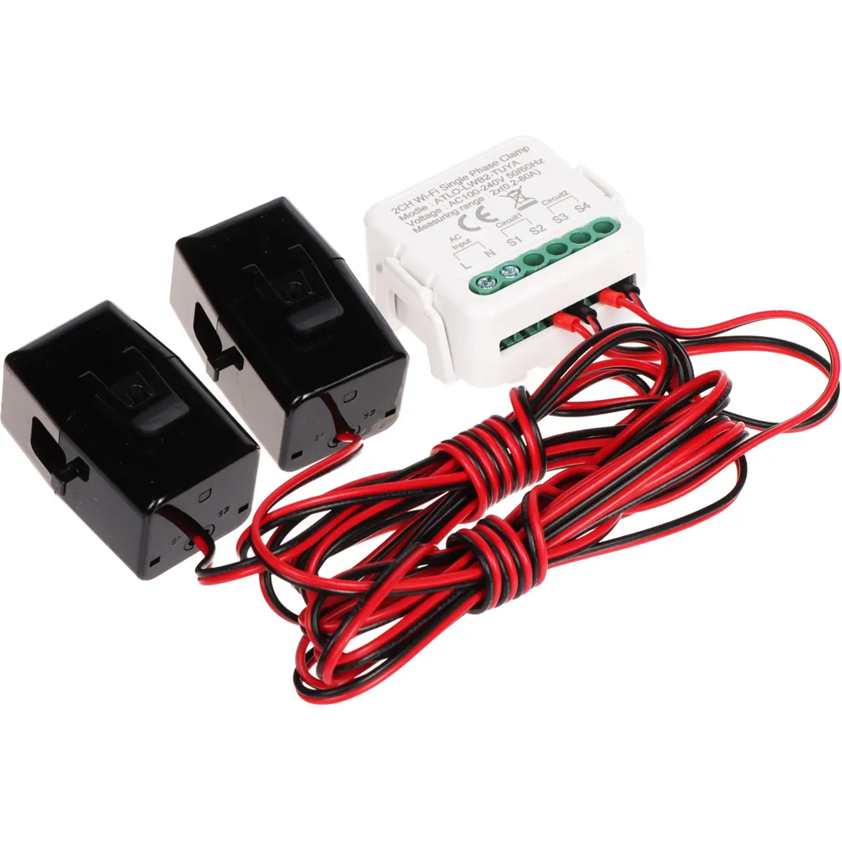 ATLO LWB2-TUYA - Módulo medidor de consumo WiFi monofásico unidirecional de 2 canais + Núcleos 80A (compatível c/ Tuya)