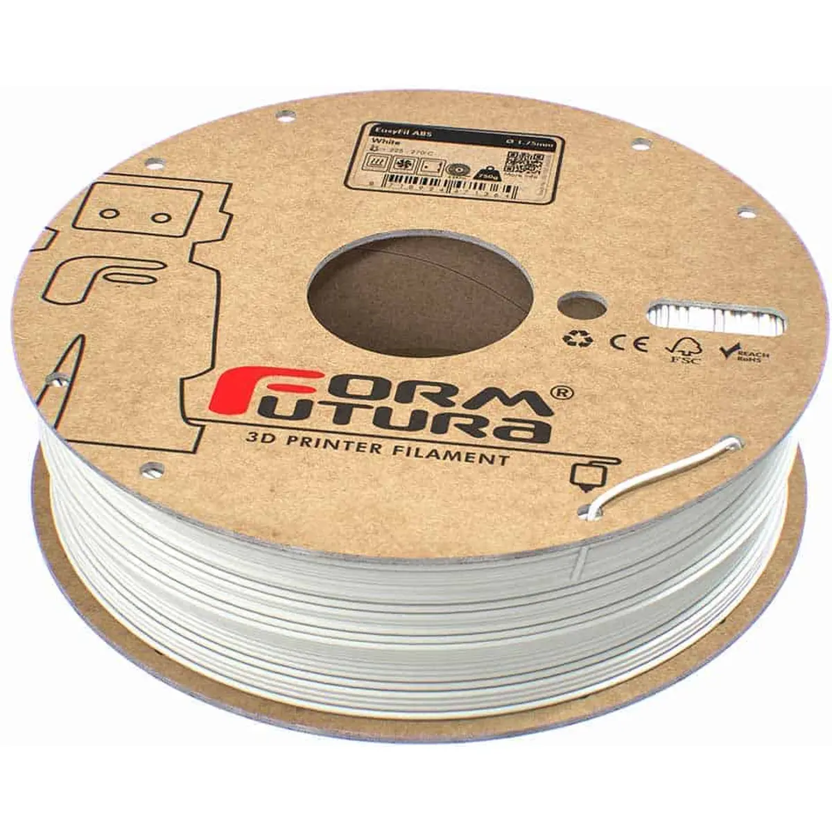 FormFutura EasyFil ABS - Rolo de filamento de impressão 3D em ABS de 1.75mm - Branco - 750g