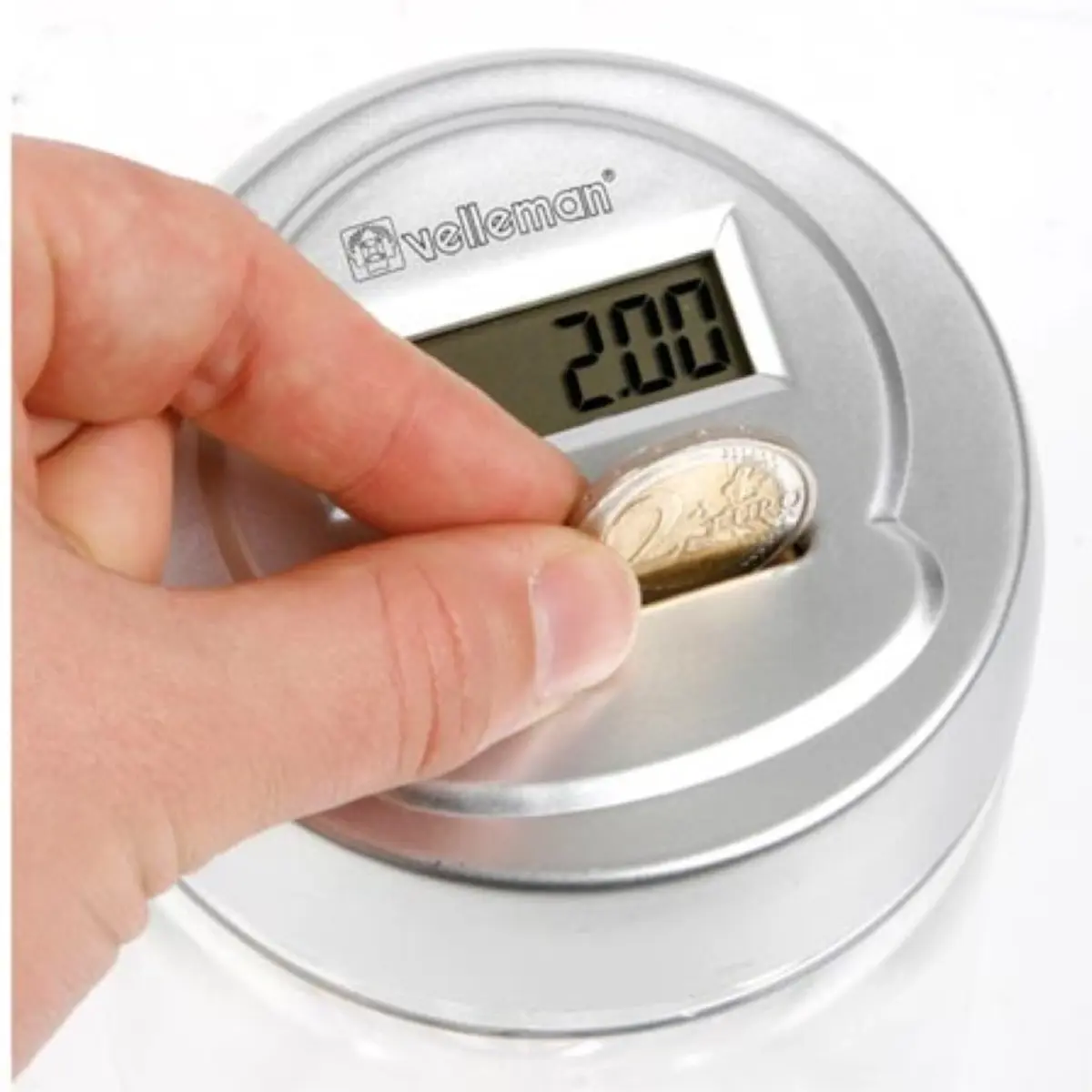 Equipado com tecnologia avançada, este Mealheiro inteligente reconhece sem esforço todas as moedas de Euro que insere no slot. O contador digital adiciona automaticamente os valores e exibe a soma total na tela LCD brilhante. A caixa de dinheiro foi projetada para reconhecer todas as moedas de euro, para que possa acompanhar com facilidade e precisão as suas poupanças. A tela LCD grande fornece uma exibição clara e fácil de ler da soma total. Além disso, o Mealheiro está equipado com recursos úteis, como um botão de redefinição que permite colocar o contador a zero e começar a poupar novamente. Tem também uma memória permanente, portanto, os seus dados são preservados mesmo quando as pilhas são substituídas.