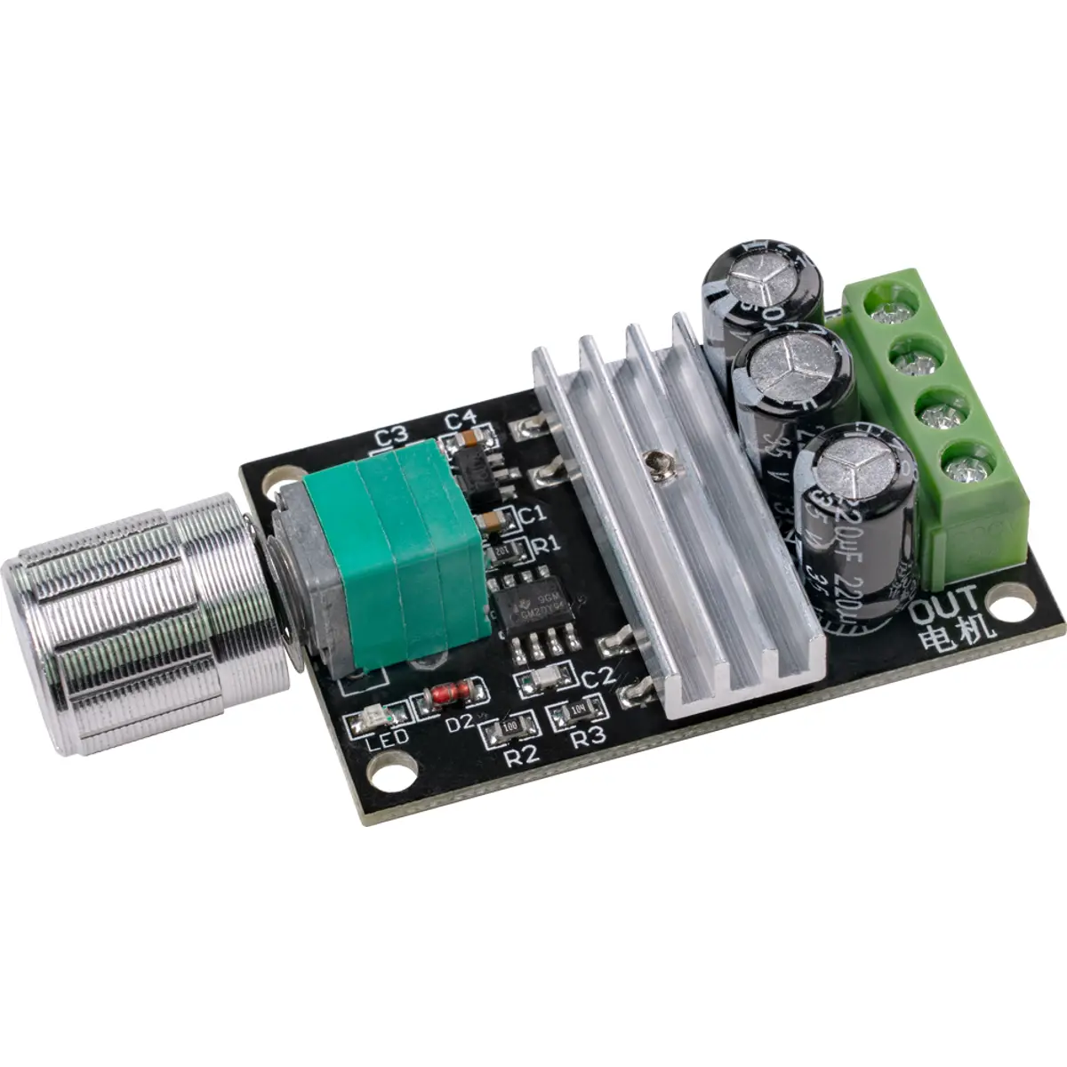 Este controlador de motor PWM permite regular de forma fácil e suave a velocidade de rotação do seu motor. A entrada e a saída são fornecidas com terminais de parafuso convenientes para que a fonte de alimentação e o motor possam ser facilmente conectados ao controlador.