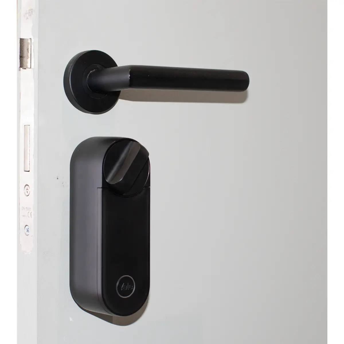 Fechadura inteligente com Bluetooth e Wi-Fi que permite trancar, destrancar e gerir o acesso remotamente sem chaves físicas. Oferece abertura automática, envio de chaves virtuais a convidados e monitorização do estado da porta (aberta/fechada) e do histórico. Compatível com sistemas de domótica, assistentes de voz e plataformas de alojamento para controlo de acessos; autenticação de dois fatores e encriptação BLE, AES e TLS. Usa 4 pilhas AA; autonomia até 2 anos em Bluetooth e até 6 meses em Wi-Fi. Disponível em preto.