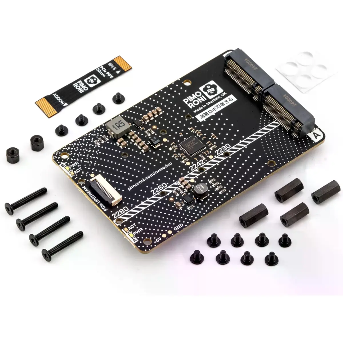 Pimoroni NVMe Base Duo - Placa de expansão NVMe PCIe para Raspberry Pi 5 c/ 2 conectores M.2