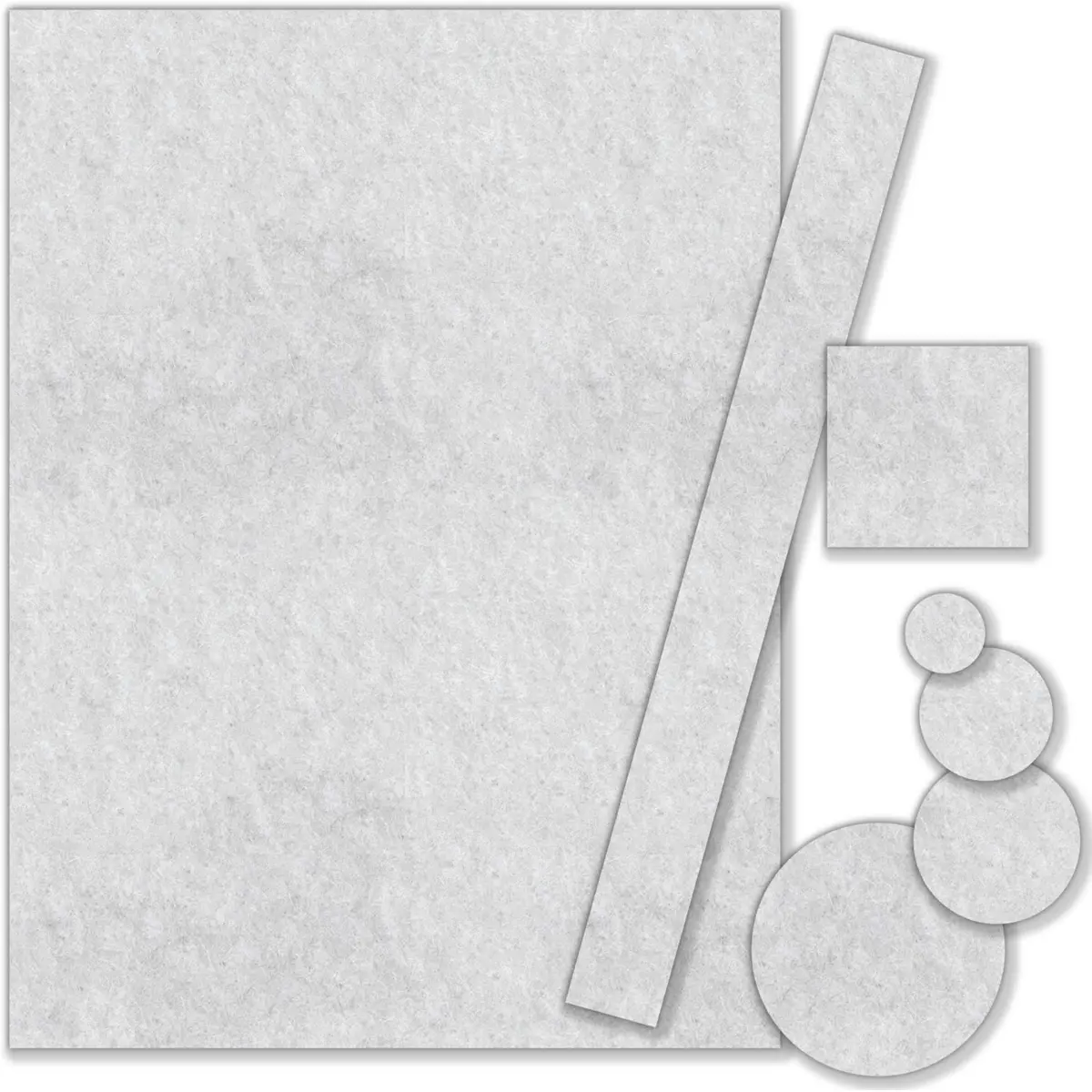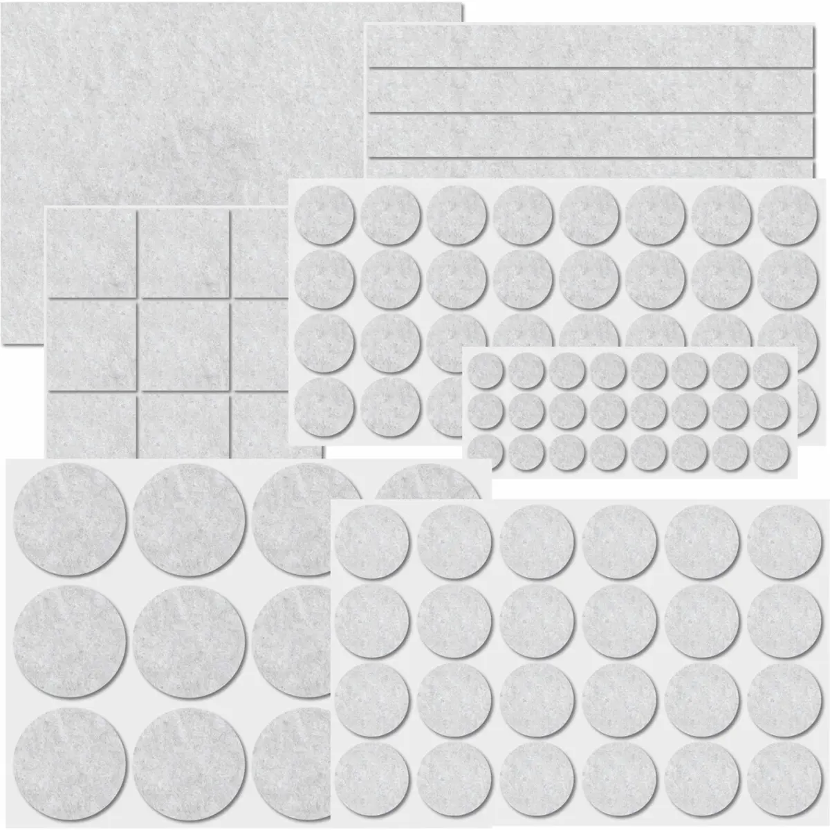 Conjunto de feltros protetores adesivos para pés de mesas e cadeiras, oferecendo proteção de pisos contra riscos e ruídos. Inclui feltros redondos em diâmetros Ø12, Ø20, Ø25 e Ø38 mm, além de feltros quadrados com 11,5x15,5cm, 1,4x15cm e 30x30mm. Ideal para mobília leve ou pesada, com adesivo de fácil aplicação e capacidade de reduzir deslizamento. Disponível em branco para combinar com diferentes superfícies.