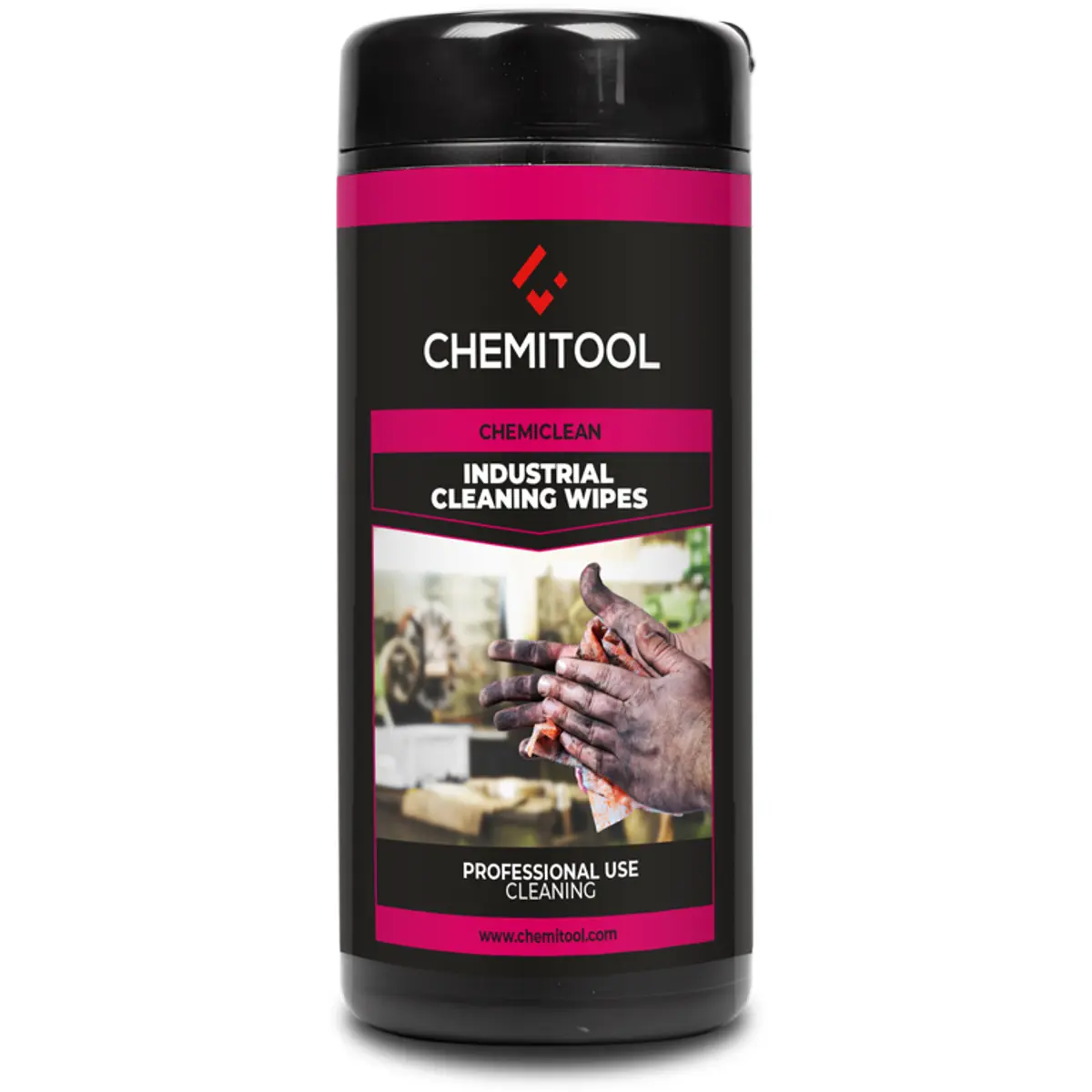 CHEMICLEAN Toalhetes de Limpeza Industrial são toalhetes de tecido TNT humedecidos, extremamente robustos e enriquecidos com um agente antibacteriano. Não necessitam de enxaguamento e são ideais para a remoção eficaz de graxa, óleo, lubrificante, grafite, tinta, silicone e outras sujidades pesadas das mãos. Com uma leve carga abrasiva, facilitam a limpeza profunda. Também são recomendados para a limpeza de máquinas e superfícies industriais.