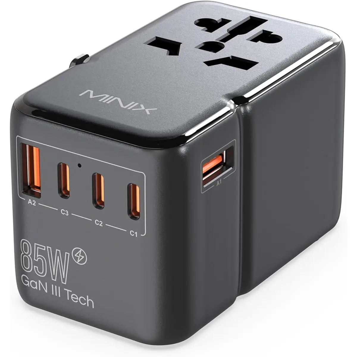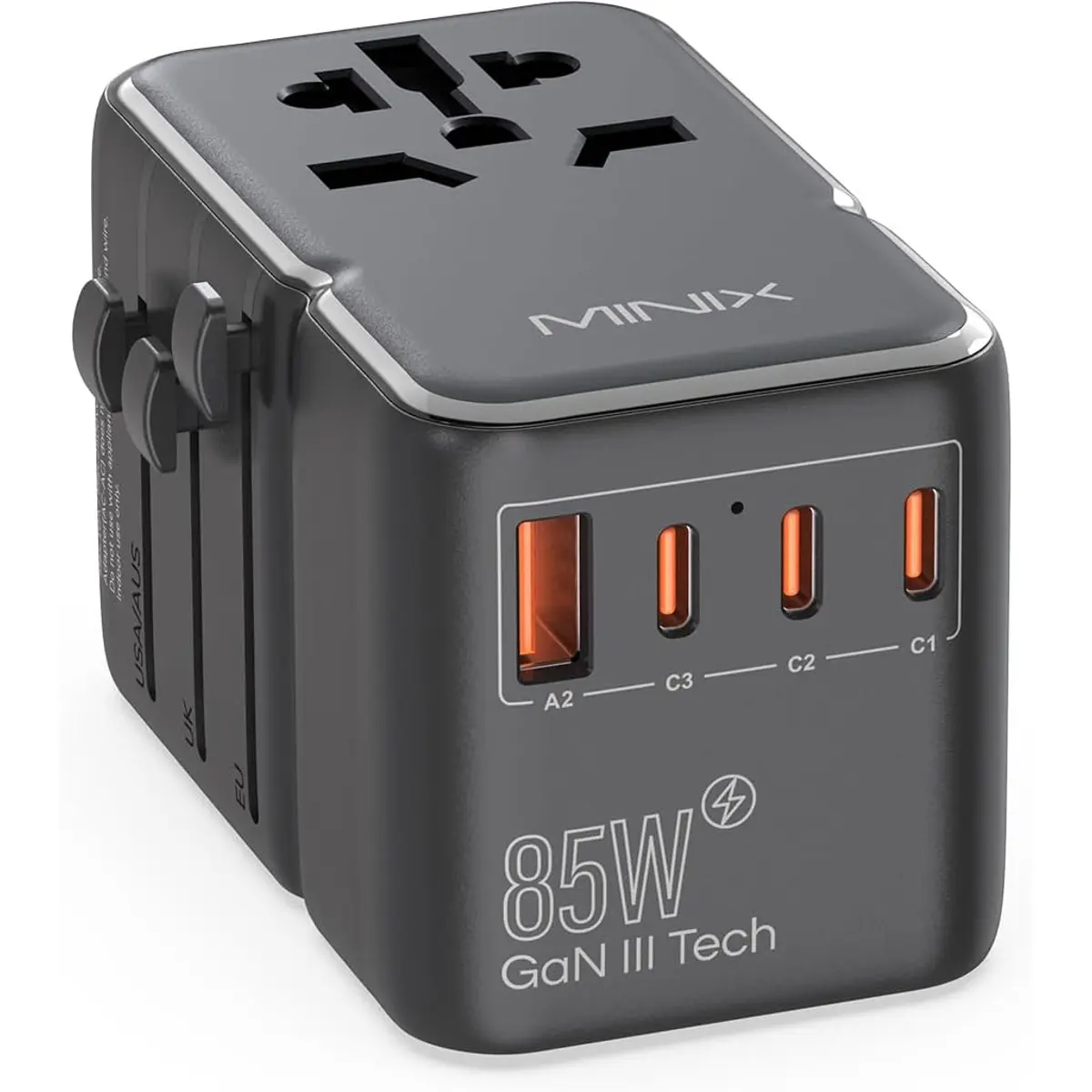 Minix TP85 - Adaptador de viagem universal c/ carregamento USB PD3.0 GaN-III 85W