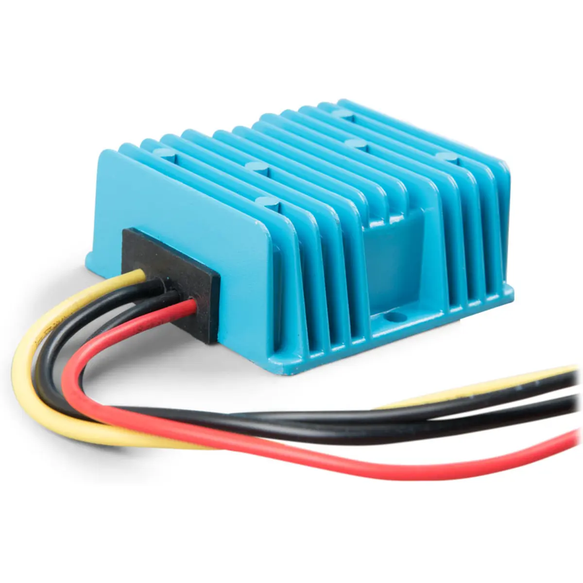 O intervalo de entrada de 15 a 40V assegura uma saída estável durante os picos ou quebras causadas pelos restantes equipamentos ligados à mesma bateria.