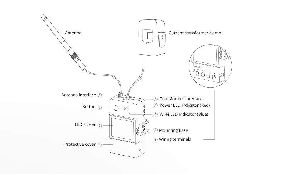 ✅ Instalação Segura e Fácil: A instalação é simplificada pela ausência de contato físico com fios energizados, minimizando o risco de choque elétrico. O CT clamp é facilmente ajustável através de travas laterais.