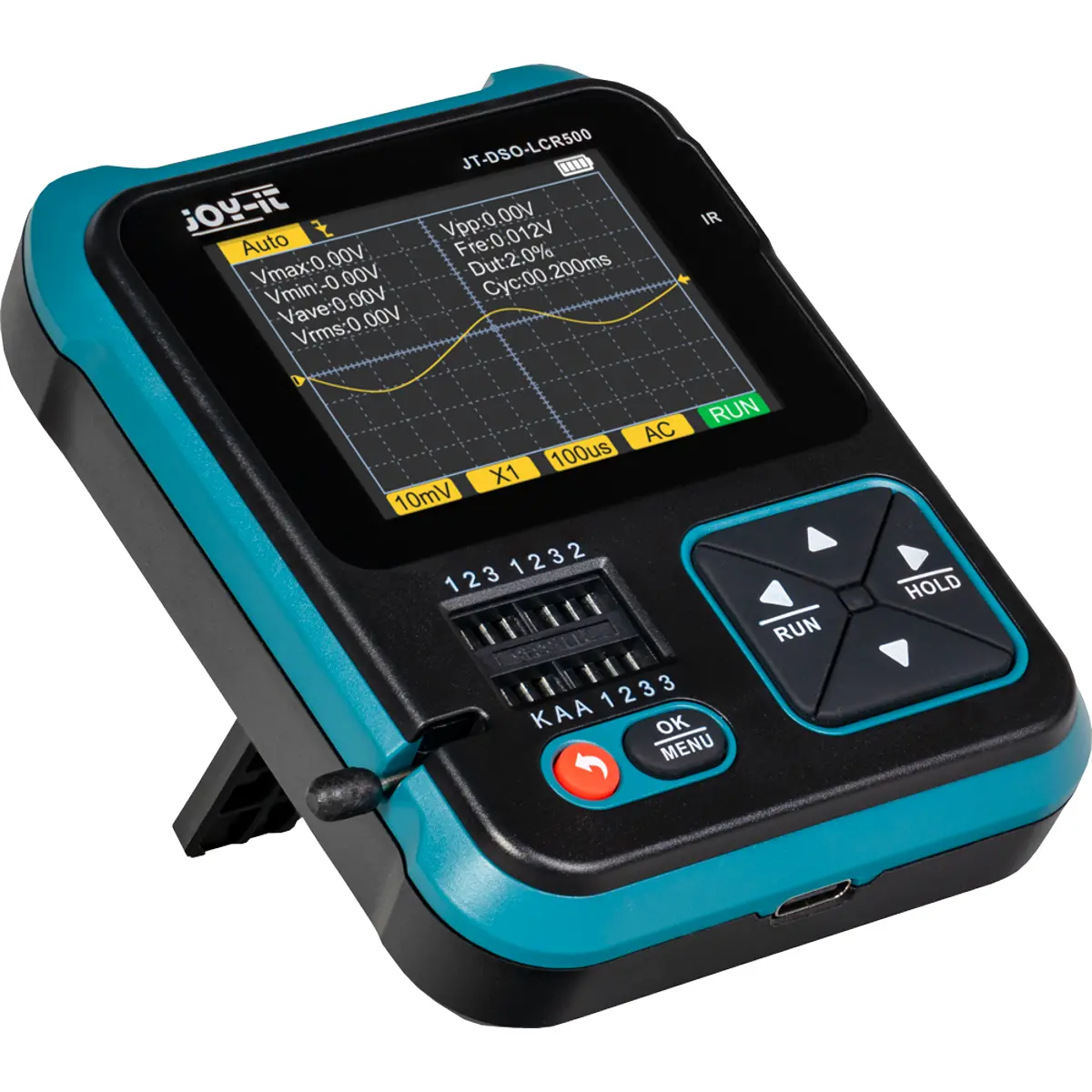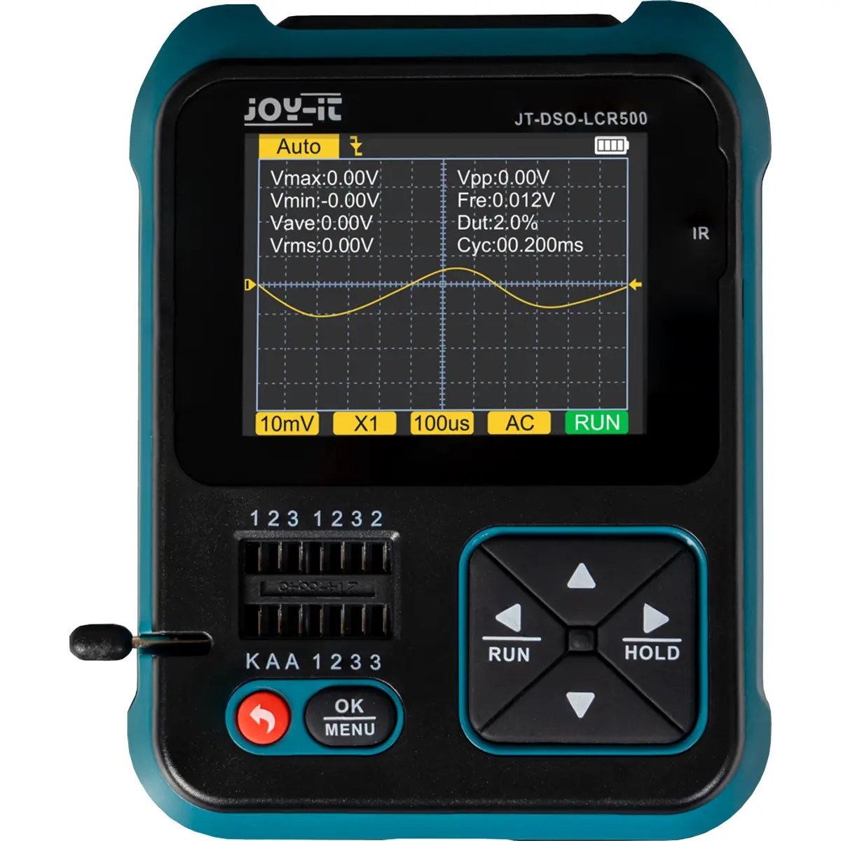 O testador de componentes multifuncional permite também a deteção rápida e automática de componentes. Além disso, o DSO-LCR500 possui funções adicionais úteis, como gerador de sinais, decodificador de sinais infravermelhos e medição de díodos Zener, sensores DS18B20 e sensores DHT11.
