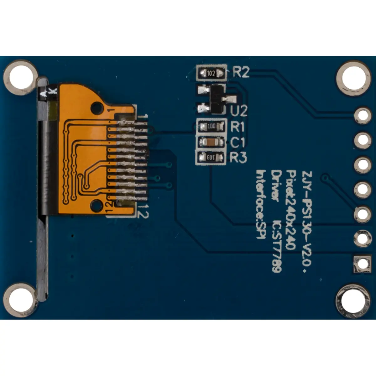 Este ecrã TFT IPS é controlado via SPI, o que o torna adequado para utilização como dispositivo de saída em microcontroladores (por exemplo, NodeMCU) e computadores de placa única (por exemplo, Raspberry Pi). Ao utilizar um painel IPS de alta resolução com uma densidade de pixels superior a 260 PPI, o conteúdo pode ser exibido com alta definição no ecrã compacto.