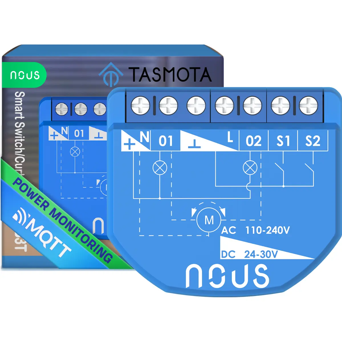 NOUS B3T - Módulo interruptor duplo / controlador de estores inteligente WiFi c/ Tasmota e medição de energia