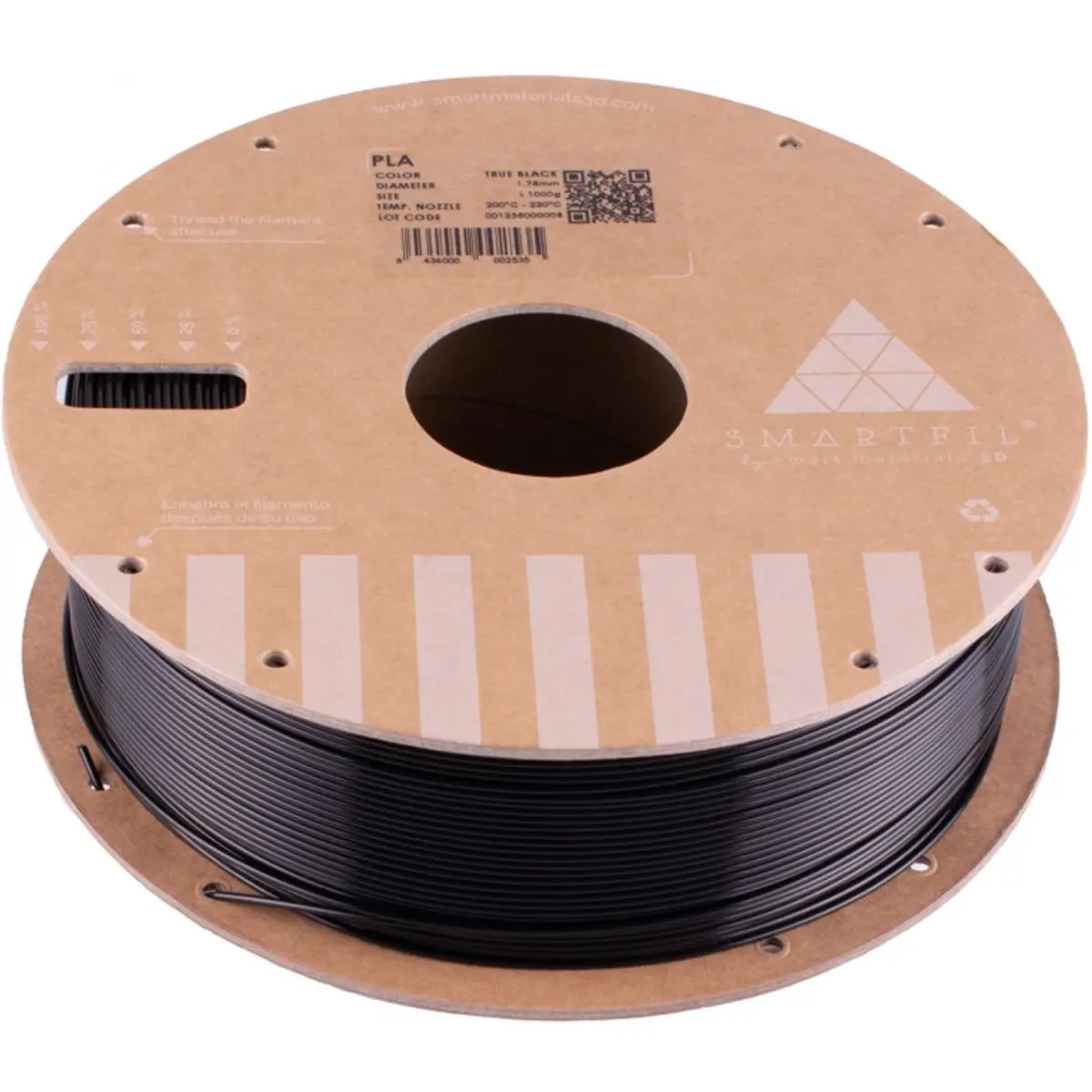 SMARTFIL - Rolo de filamento de impressão 3D em PLA de 1.75mm - Preto - 1000g