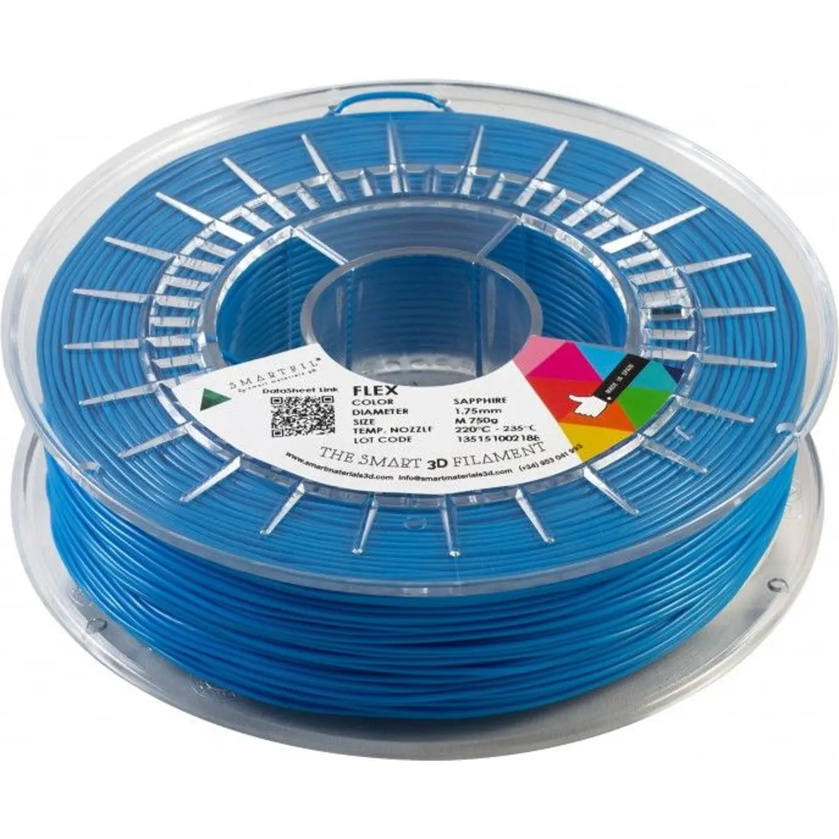 SMARTFIL - Rolo de filamento 1.75mm flexível TPU FLEX 93A - Azul (Safira) - 750g