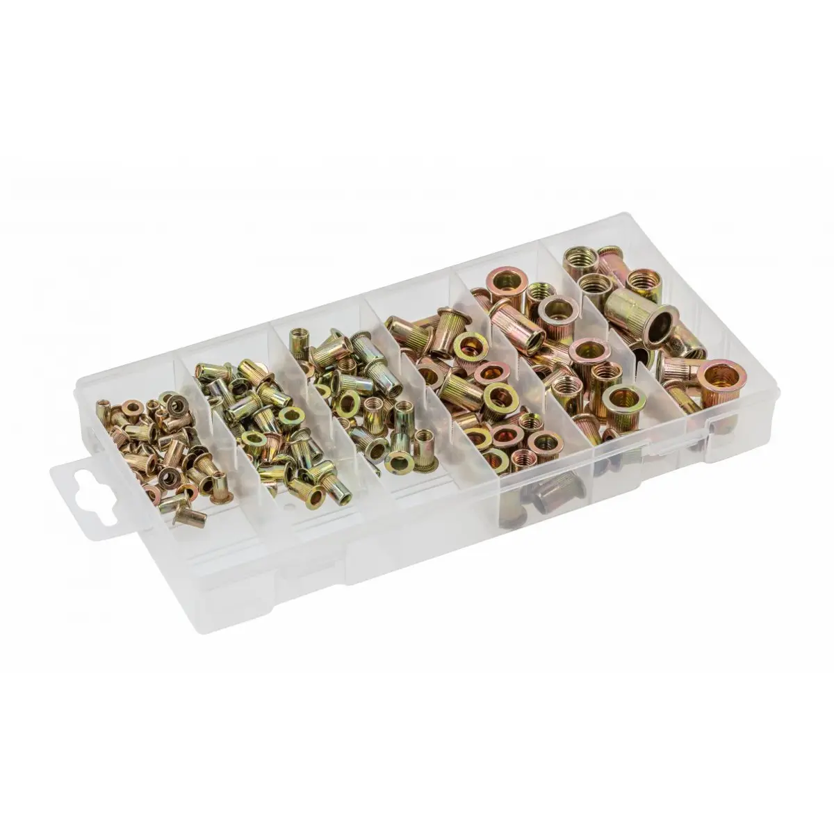 As porcas de rebite de aço são usadas para a união permanente de elementos. Possuem uma rosca métrica para utilização com parafusos e pinos de fixação.