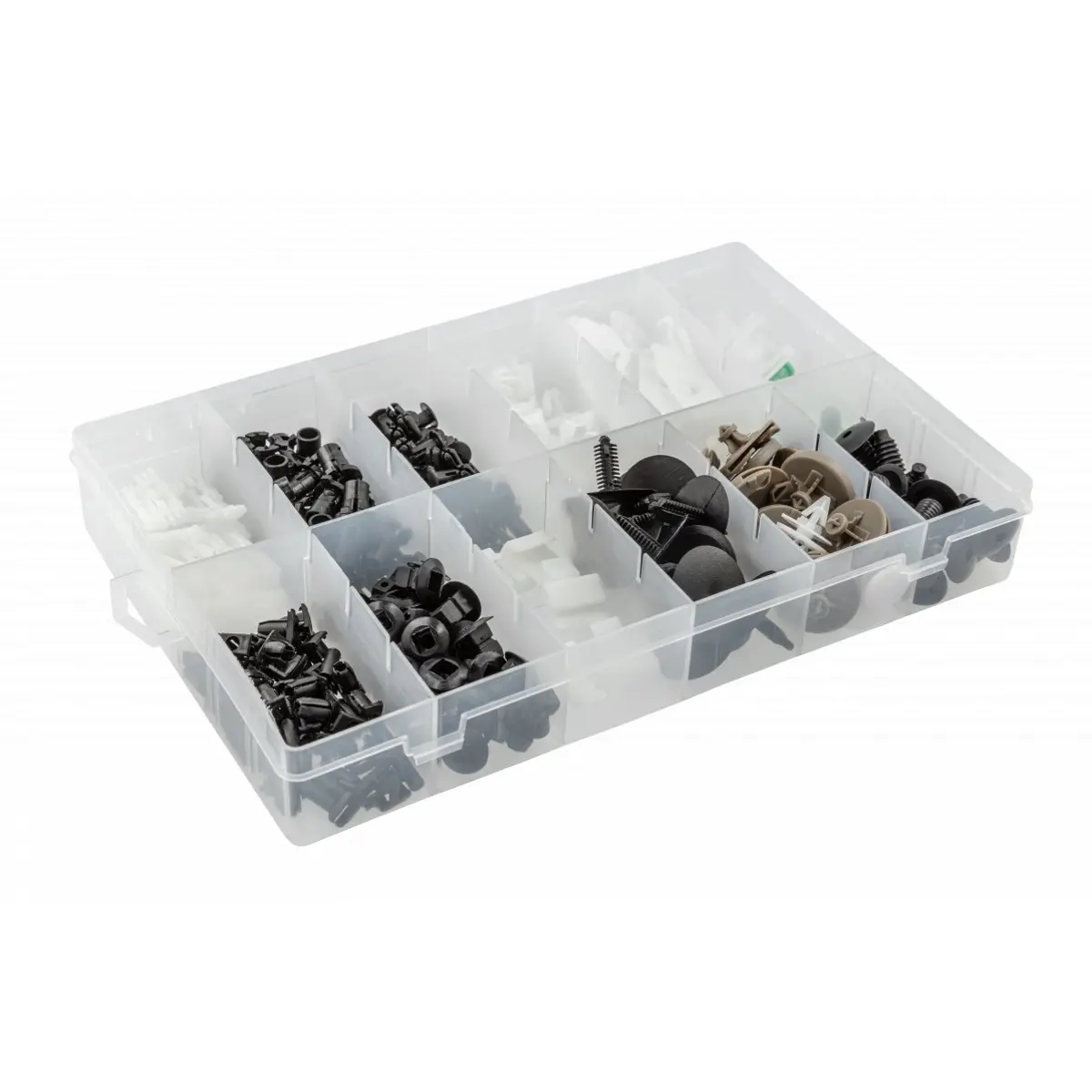 - Vários tipos de clips, como clips de montagem, fechos, grommets, clips de retenção, clips de moldura lateral e muitos mais