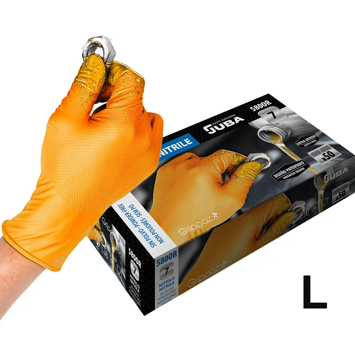 Juba 580OR Gripaz - Luvas de Nitrilo descartáveis sem pó alta-resistência [50und.] - Laranja - Size L (9)