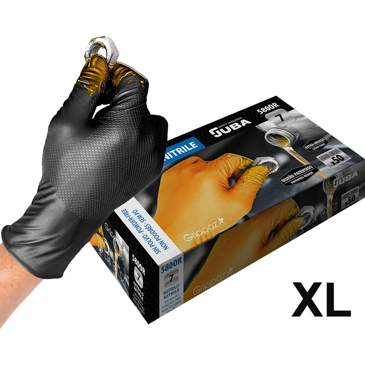 Juba 580NR Gripaz - Luvas de Nitrilo descartáveis sem pó alta-resistência [50und.] - Preto - Size XL (10)