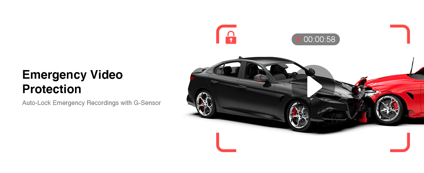Em caso de acidente, é possível que se esqueça de salvar as filmagens da câmara, o que pode resultar na sua sobregravação. No entanto, o sensor G incorporado na câmara deteta automaticamente colisões e guarda o clipe relevante. Estes clipes são protegidos e não serão substituídos pela função de gravação contínua.