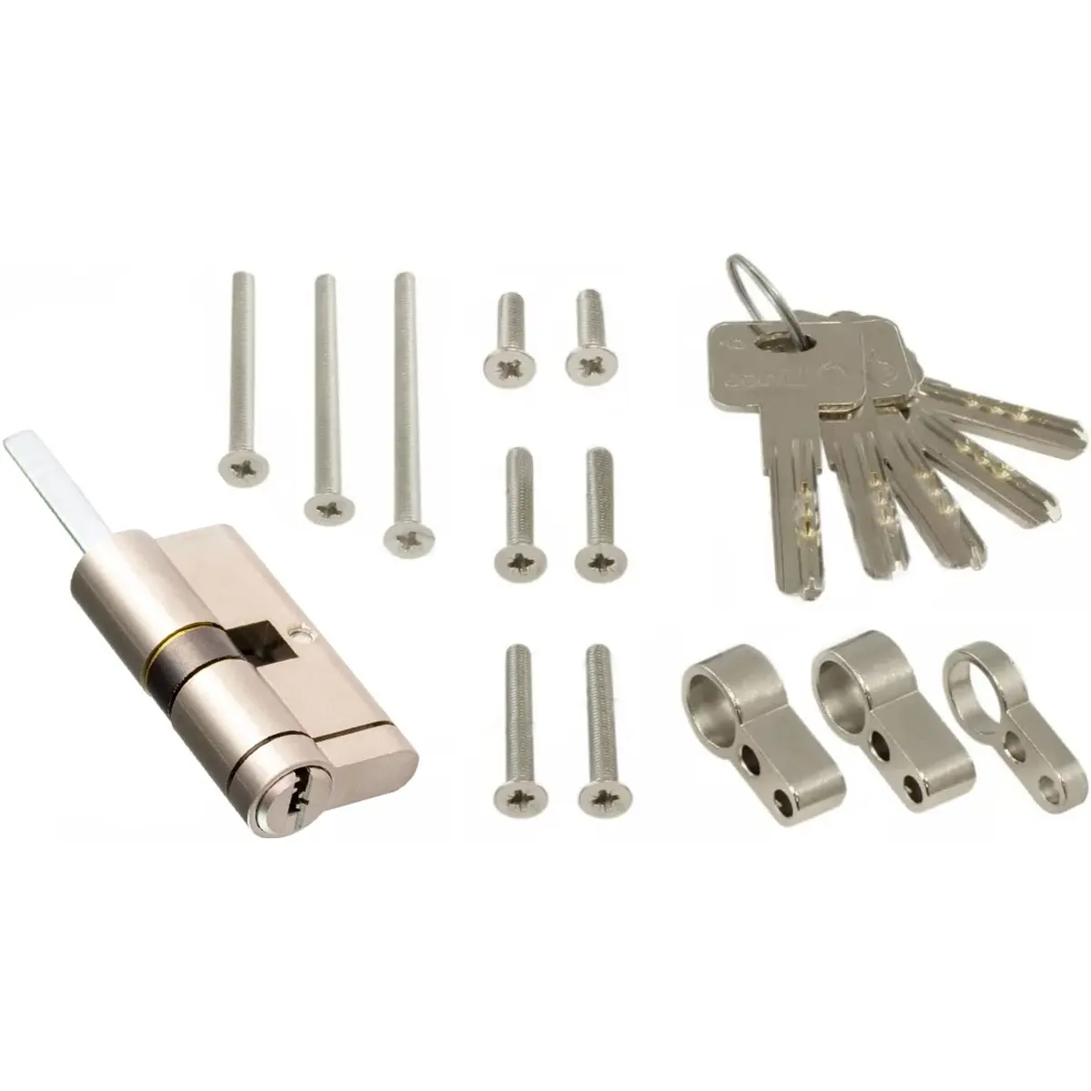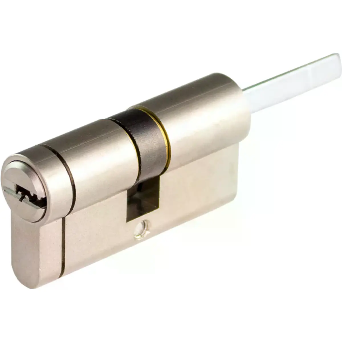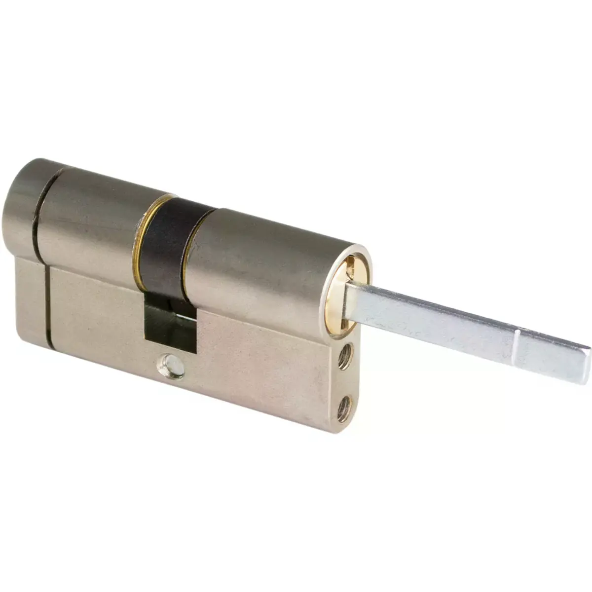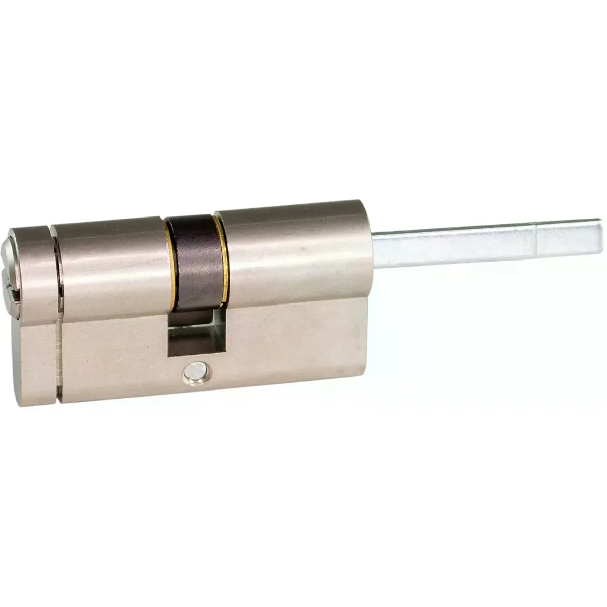Este cilindro de segurança com perfil Euro destina-se a fechaduras inteligentes com Danalock V3; oferece comprimento externo de 30 mm e comprimento interno sem espaçadores de 30 mm, com ajuste via dois espaçadores de 10 mm e um de 5 mm. Inclui 5 chaves físicas e cartão de segurança, com cópias apenas mediante apresentação do cartão, parafusos de comprimentos diferentes e revestimento em níquel. O conjunto permite 35, 40, 45, 50 ou 55 mm de comprimento interno com espaçadores, proporcionando montagem flexível.