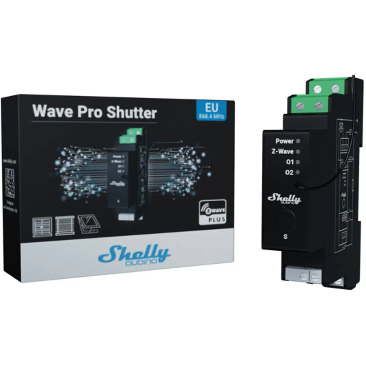 O Shelly Qubino Wave Pro Shutter é um módulo com Z-Wave 800 embutido, concebido para controlar e posicionar, com precisão, estores ou outros dispositivos que tenham motor AC bidirecional de 240V. Ideal para controlo a partir de um interruptor central ou quadros de distribuição, uma vez que possui encaixe para instalação em calha DIN.