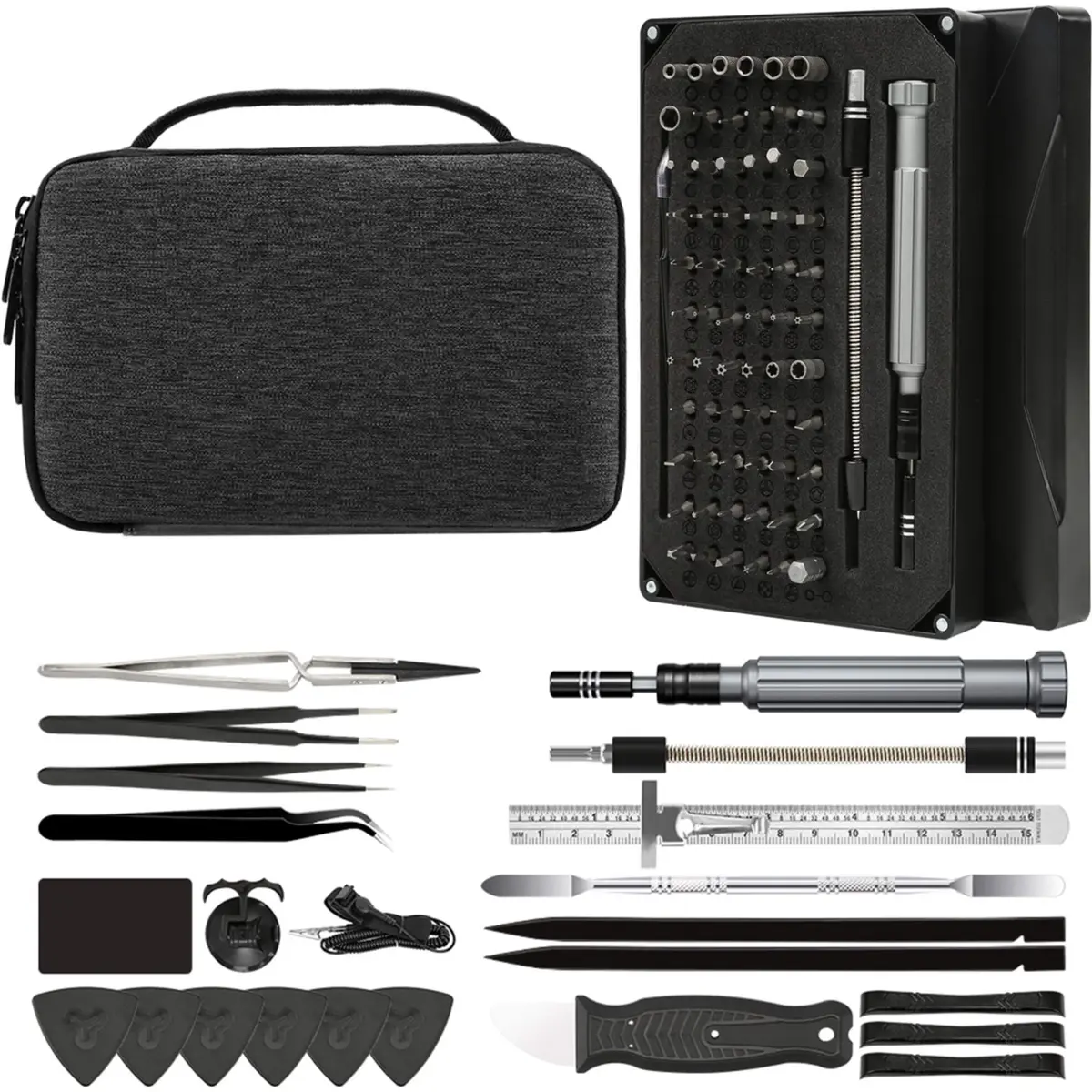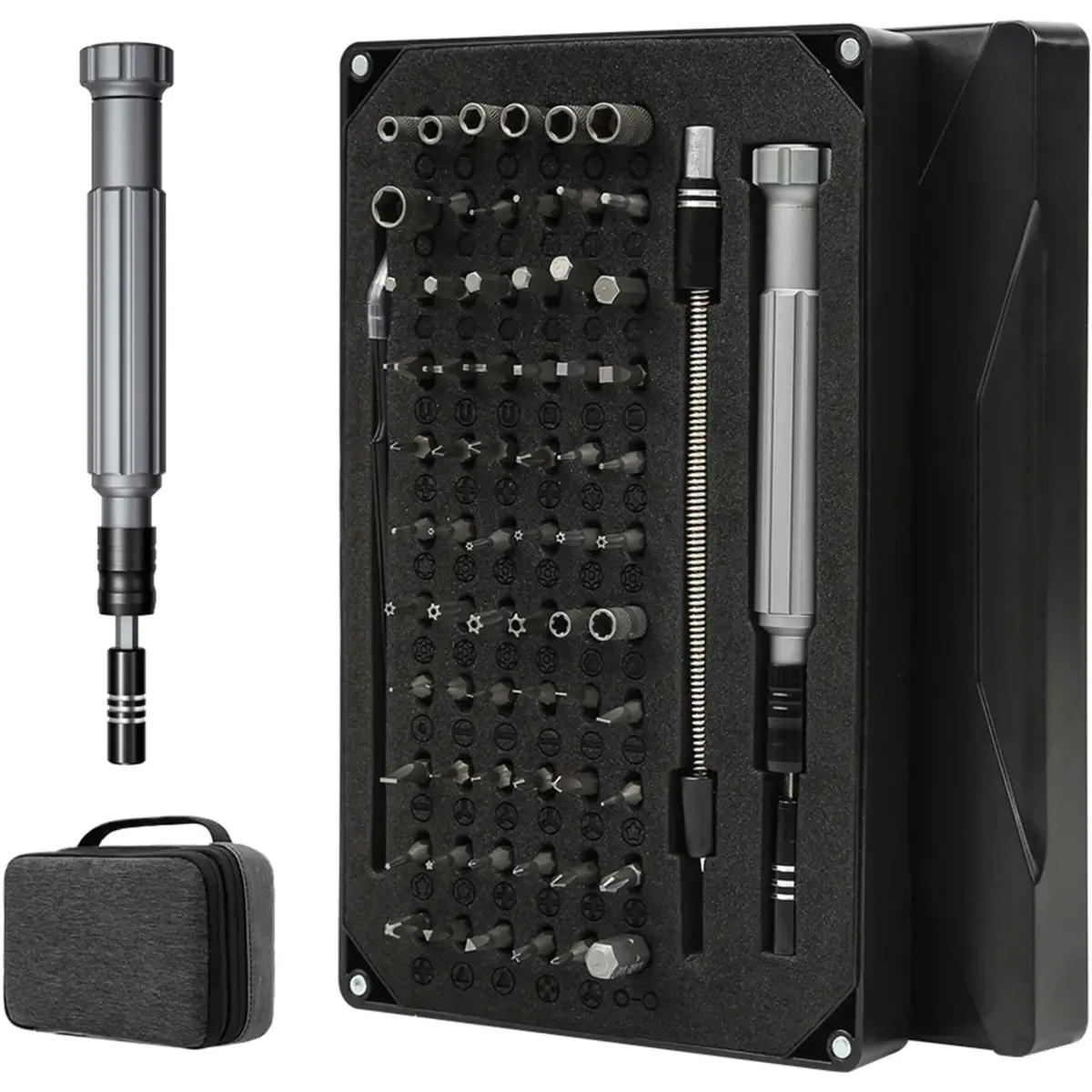 Conjunto de chaves de precisão com 66 pontas, fabricadas em aço S2 ou aço cromado vanádio, ideal para reparações em smartphones, tablets, drones e computadores. Inclui punho de alumínio magnetizado com haste extensível, tampa rotativa de 360° e haste flexível, oferecendo maior alcance e controlo. Completo, com acessórios e bolsa de transporte de qualidade, adequado tanto para profissionais como para entusiastas, proporcionando precisão, durabilidade e organização em trabalhos de reparação delicados e exigentes.