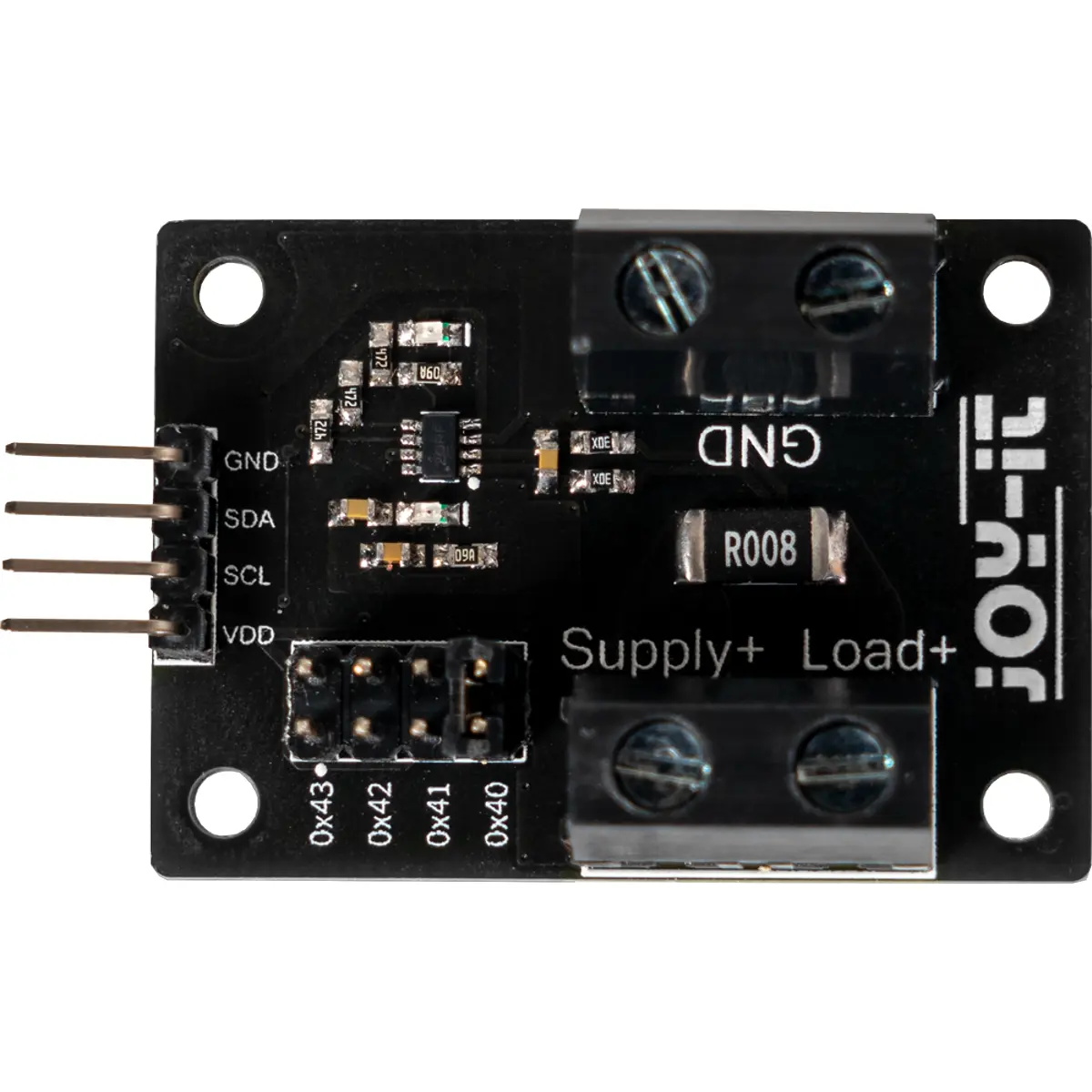 O produto disponibiliza um módulo de 16 bits para monitorização da corrente elétrica com interface I2C, sendo compatível com várias tensões de barramento digital, incluindo 1,8 V, 3,3 V e 5,0 V. Monitora a tensão através de uma resistência externa e fornece informações detalhadas sobre o fluxo de corrente, a tensão do barramento e a potência, permitindo a leitura direta dos valores em amperes para a corrente e em watts para a potência.