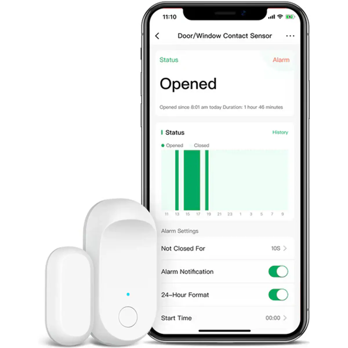 Este sensor permite detetar se a sua porta ou janela está aberta, medindo a alteração da distância entre as duas partes do sensor. É compatível com a maioria dos tipos de portas e janelas e também pode ser usado para monitorizar gavetas, armários, etc.