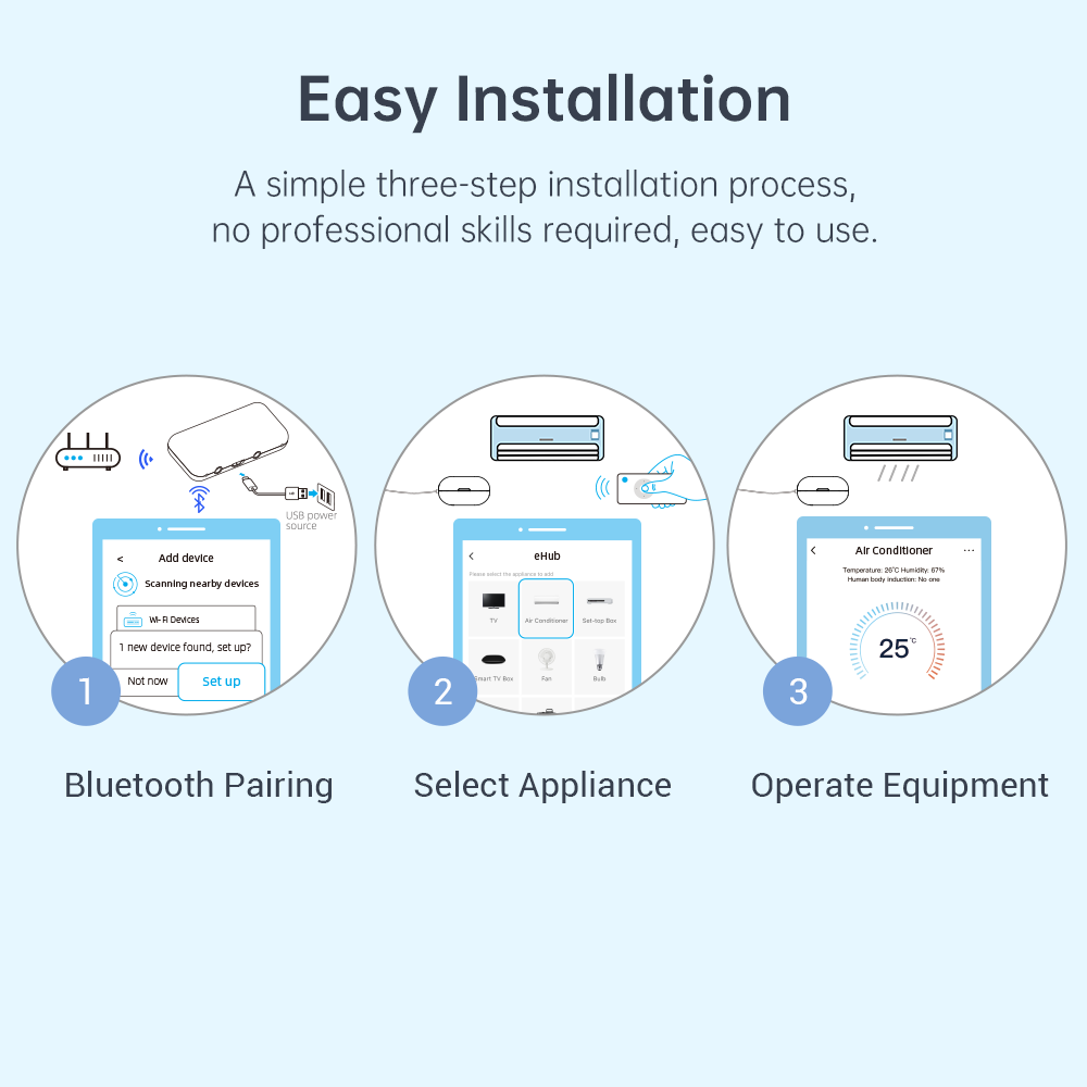 O eHub é compatível com uma ampla variedade de marcas e dispositivos, tornando-se o controlo remoto universal perfeito para a sua casa. Transforme os seus aparelhos tradicionais em dispositivos inteligentes.