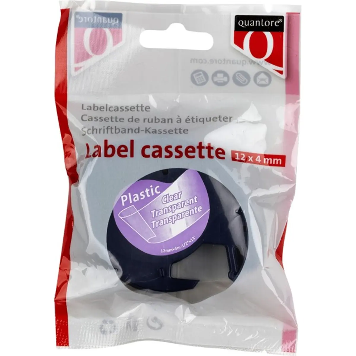 Quantore 931180 - Fita de etiquetar compatível LT 12267 em plástico [Preto sobre Transparente] - 12mm x 4m