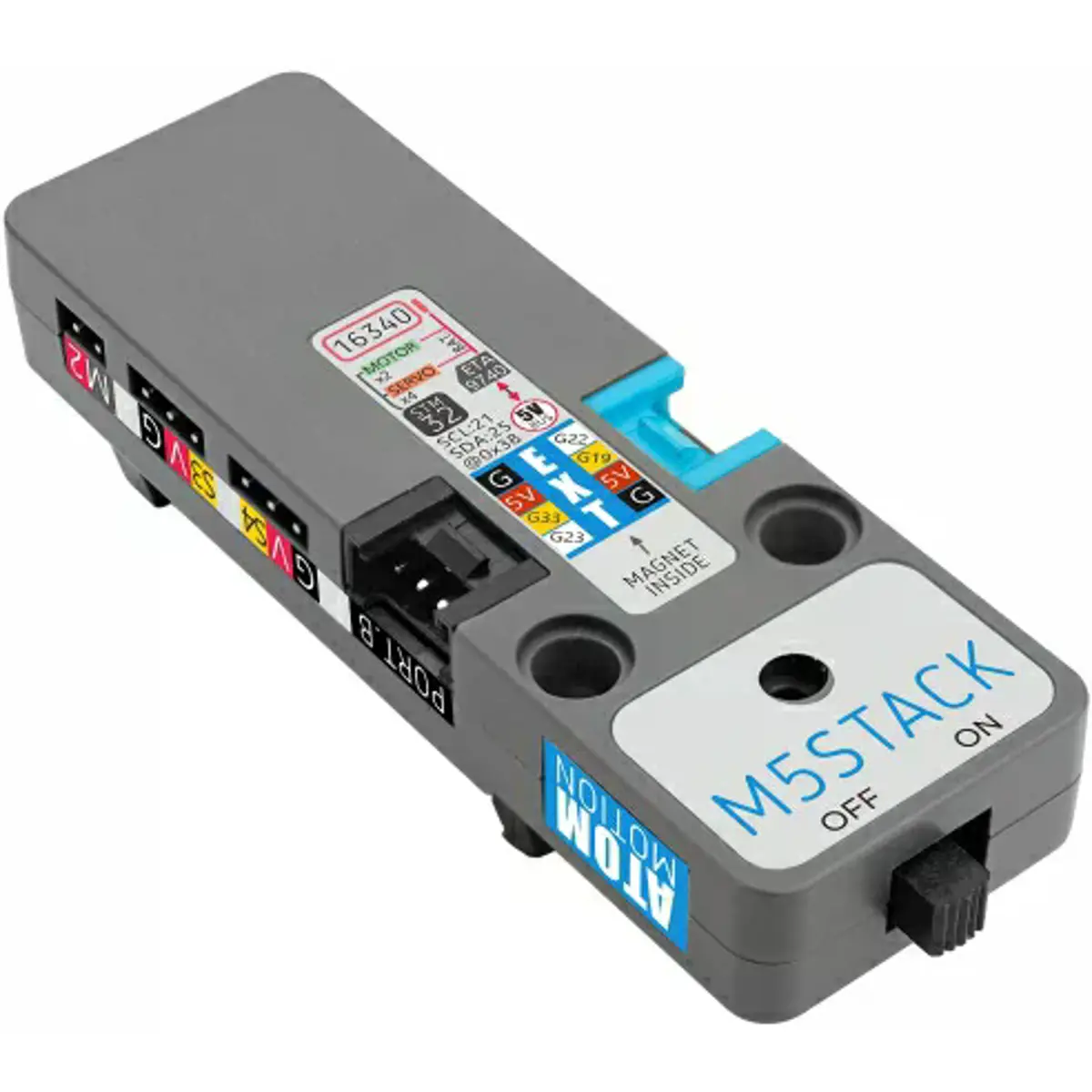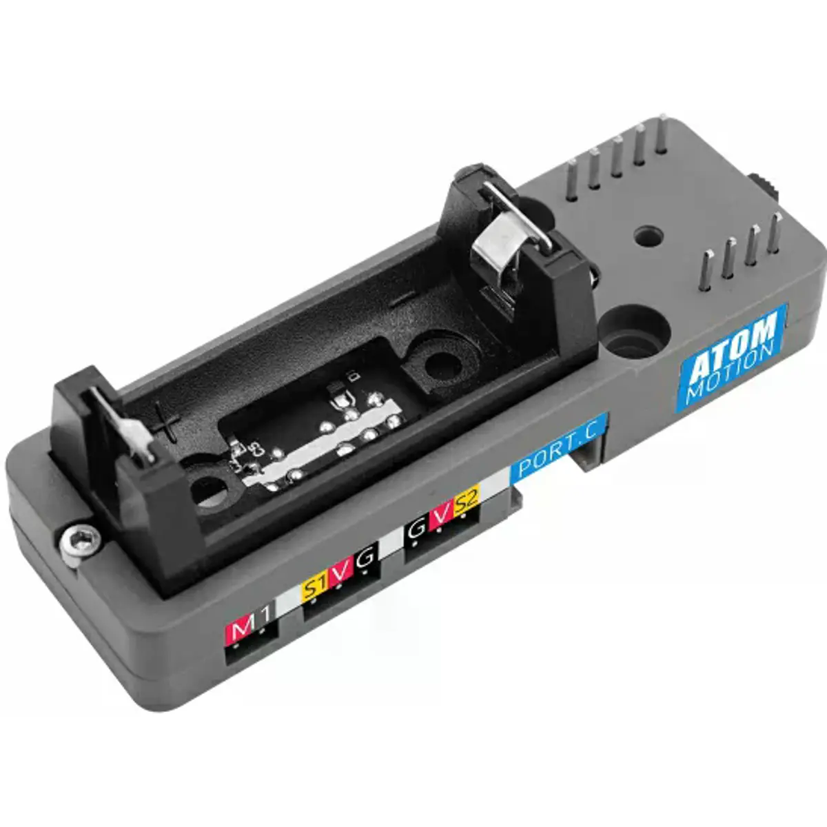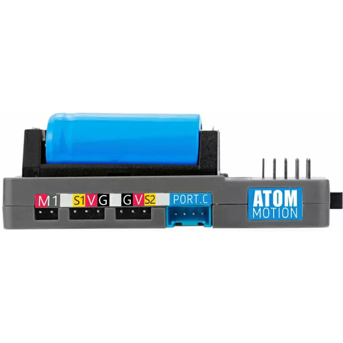 O Atomic Motion Base é um controlador de servos e motores DC, projetado especificamente para os controladores da série ATOM. Ele integra um chip de controlo STM32 internamente (STM32F030) e utiliza comunicação I2C para o controlo.