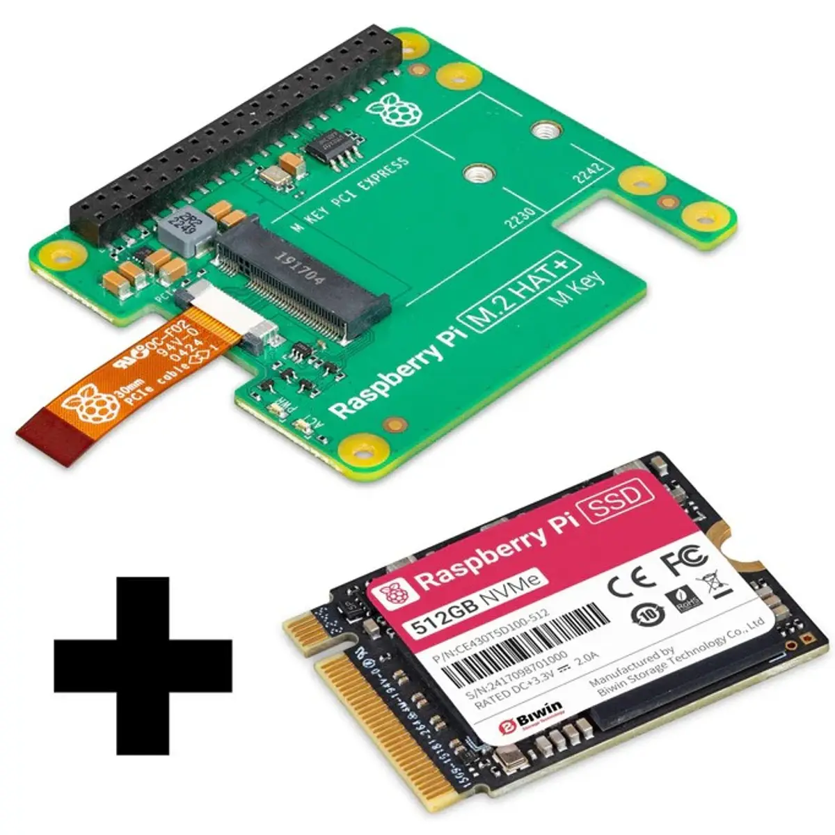 ◾ Inclui um SSD NVMe de 512GB pré-instalado na placa Raspberry Pi M.2 HAT+.