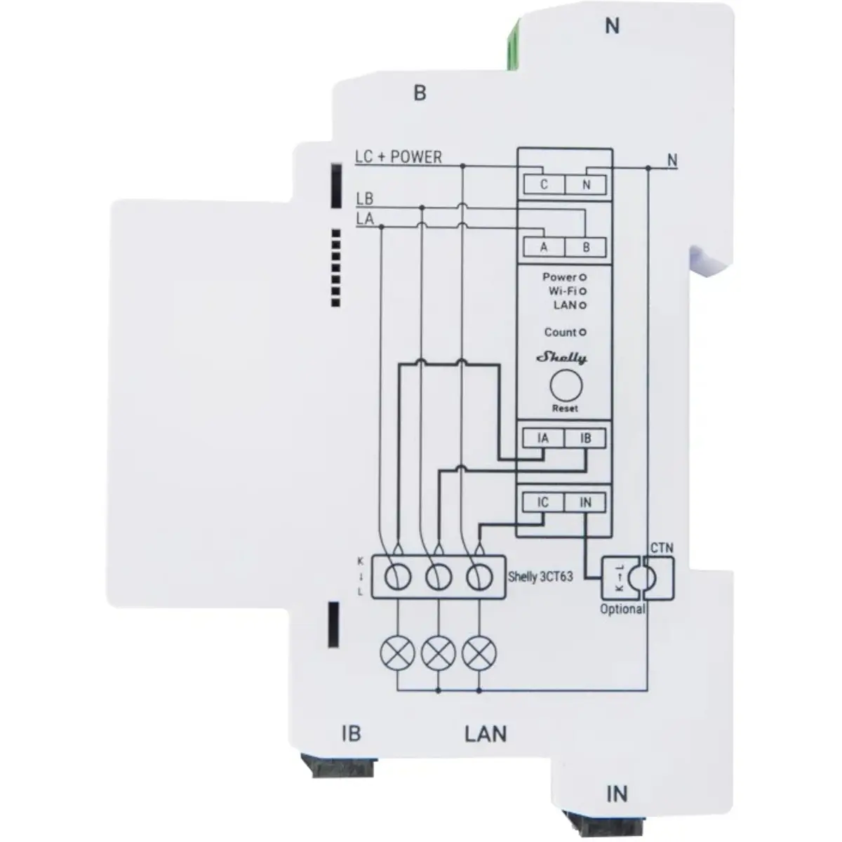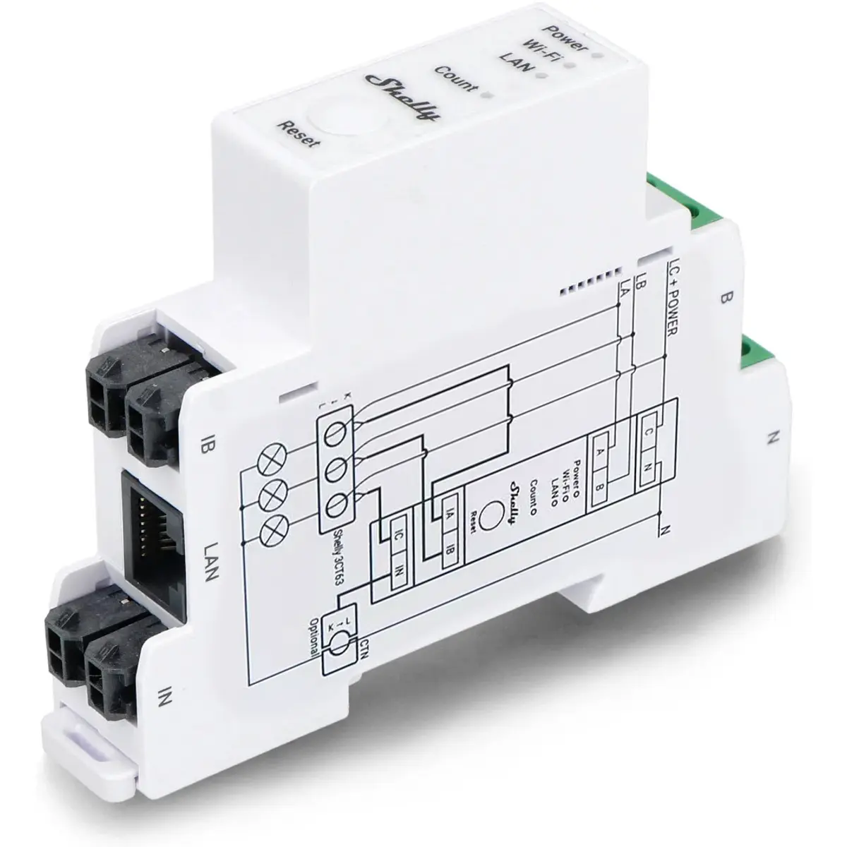 O Shelly Pro 3EM-3CT63 é um medidor de energia avançado, ideal para monitorizar o consumo elétrico em instalações trifásicas ou monofásicas. Projetado para montagem em calha DIN, este dispositivo destaca-se pela sua precisão e versatilidade, sendo adequado tanto para ambientes residenciais como industriais. Equipado com um transformador de corrente trifásico de 63A, o Shelly Pro 3EM-3CT63 permite medir o consumo de energia de forma precisa, em tempo real, com capacidade de armazenar dados até 60 dias, facilitando a análise de consumo e a gestão de cargas elétricas.