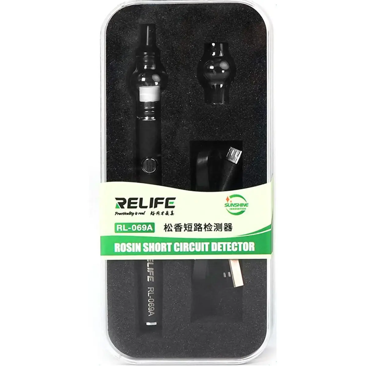 Ferramenta utilizada para detectar curtos-circuitos utilizando fluxo de resina colofónia (vendida separadamente).