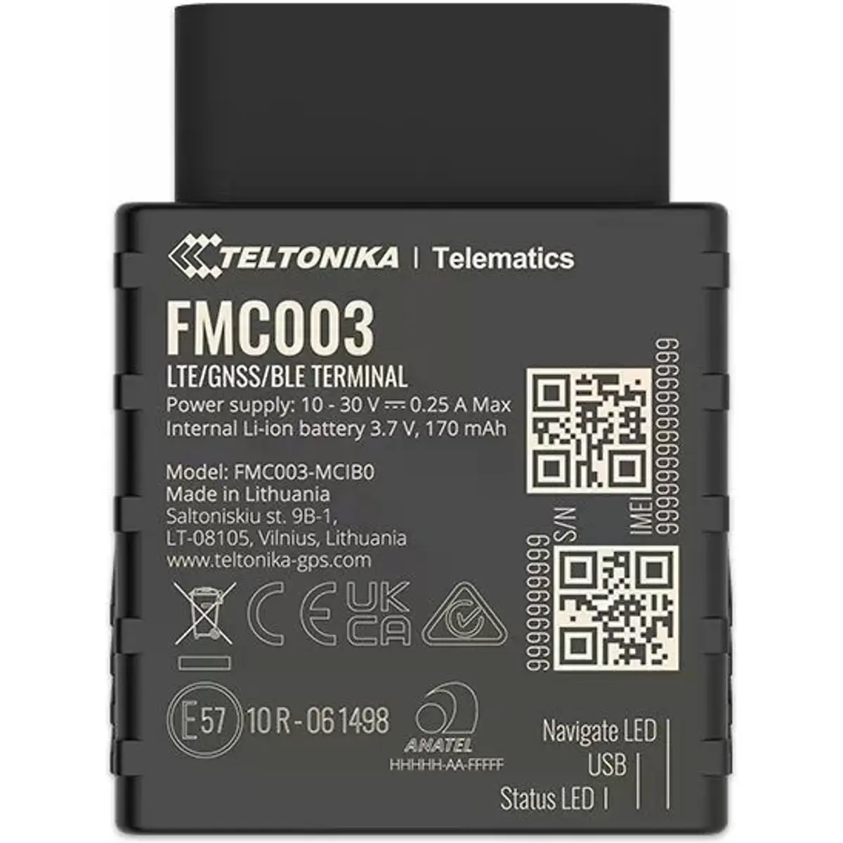 O FMC003 é um rastreador GPS compacto e de fácil instalação, com conectividade 4G (LTE Cat 1) e fallback para a rede 2G (GSM). Para além de indicar a localização do veículo, também permite a leitura de parâmetros OEM (PIDs) diretamente através da porta OBD-II, como o odómetro real e o nível de combustível. O FMC003 oferece uma solução completa e eficiente, ideal para aplicações como a gestão de frotas, telemática de seguros, aluguer e leasing de veículos.