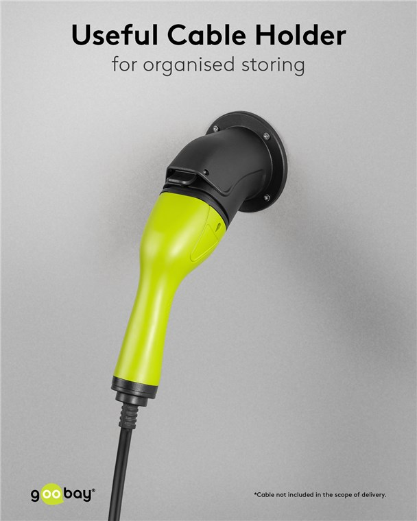- Proteção Adicional: O suporte cobre a boquilha, protegendo o cabo de carregamento Tipo 2 contra poeira, sujidade e entrada de água.